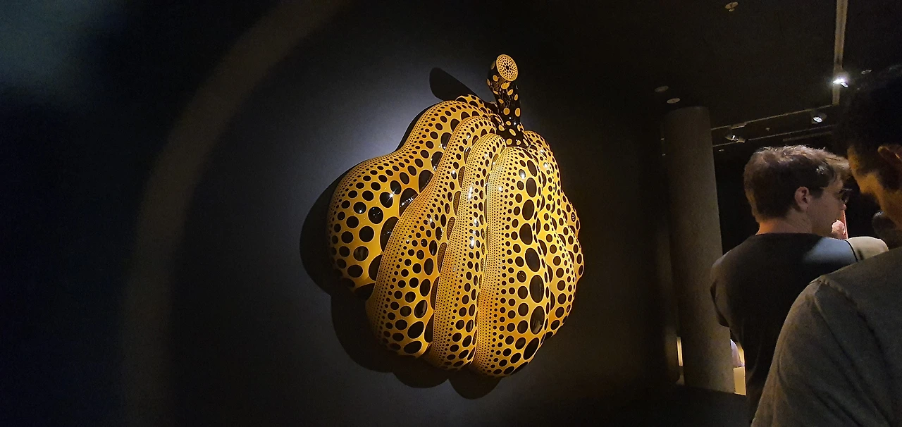 이틀 뒤 찾은 미술관은 방학(부활절 방학)이라 그런 건지 작가의 인기 때문인지 전시회의 끝물이라 그런 건지 입구며 로비에서부터 사람들로 붐볐다. 미술관 로비 중앙엔 그녀의 대표작인 땡땡이 노란 호박이 거대하게 자리 잡고 있었다.