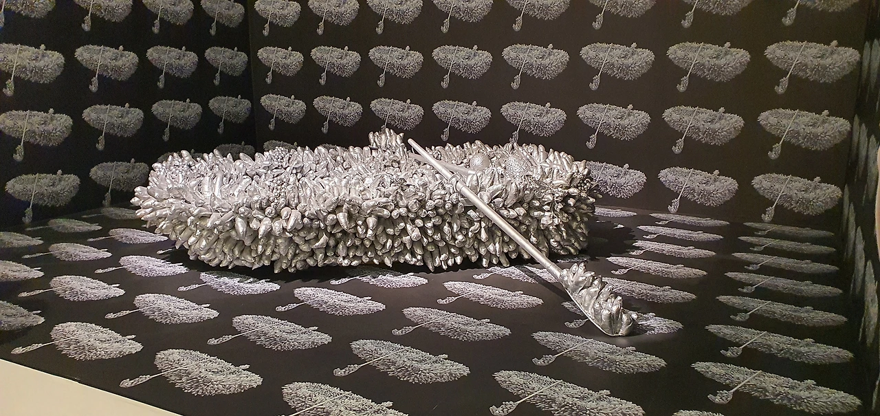 쿠사마의 초창기 작품들을 처음으로 봤는데 대체로 기괴하고 전위적이고 어두웠으며 역겹기도 했다. 반들반들한 표면에 원색의 땡땡이 점들이 동화처럼 예쁘고 몽환적인 후기의 작품들과는 딴판으로 달랐다. 존 레넌의 부인이었던 전위 예술가 오노 요코가 잠시 생각났다. 그 시대의 일본 여류 예술가들은 왜 뉴욕에서 이런 작품 활동들을 한 거지? 전후 세대의 아픔 때문인가? 개인적 삶의 고통이 그리도 컸었나? 이런 생각들이 스쳐 지나갔다.