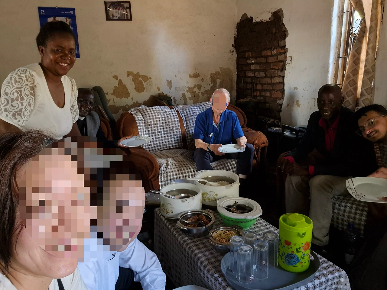 어느 산골마을 교회 예배를 마치고 저녁 초대를 받았다. 누구 집 대문 앞에 차려진 식사였다. 말라위 여인들은 한상을 미리 차려놓고 숨는다. 식사에 동참하지 않는다. 아내들은 종종 집에서 무릎을 꿇고 남편에게 말한다. 여성의 지위가 많이 약한 듯하다. 식사 전엔 따뜻한 물과 대야를 들고 와 손님들이 손을 씻도록 돕는다. 손으로 음식을 먹는 경우도 많다. 우리 일행 4명은 모두 사양했고 말라위 목사님들은 맛있게 냠냠. 이즈음 팀원들 중 몇몇이 배앓이를 해서 몸을 좀 사려야 했다. 그래도 식탁 위 대화는 즐거웠다. 식사를 마치고 준비한 이들을 불러 작은 선물을 건넸다.