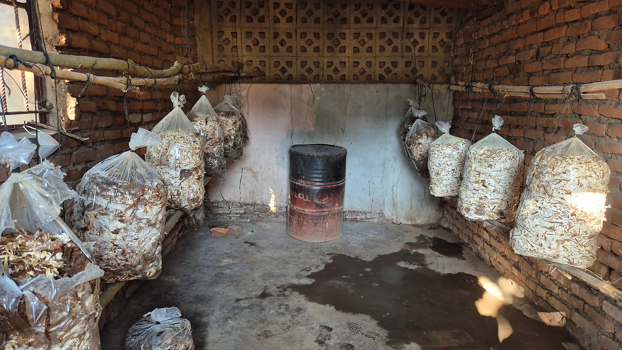 버섯을 매달아 재배하는 작은 방도 있었다. 집집마다 야채 몇 포기라도 길러 먹으려 애쓰는 모습이었는데 땅은 메마르고 팍팍해 보였다. 가뭄 때문인지 원래 토양이 그런 건지는 모르겠다.