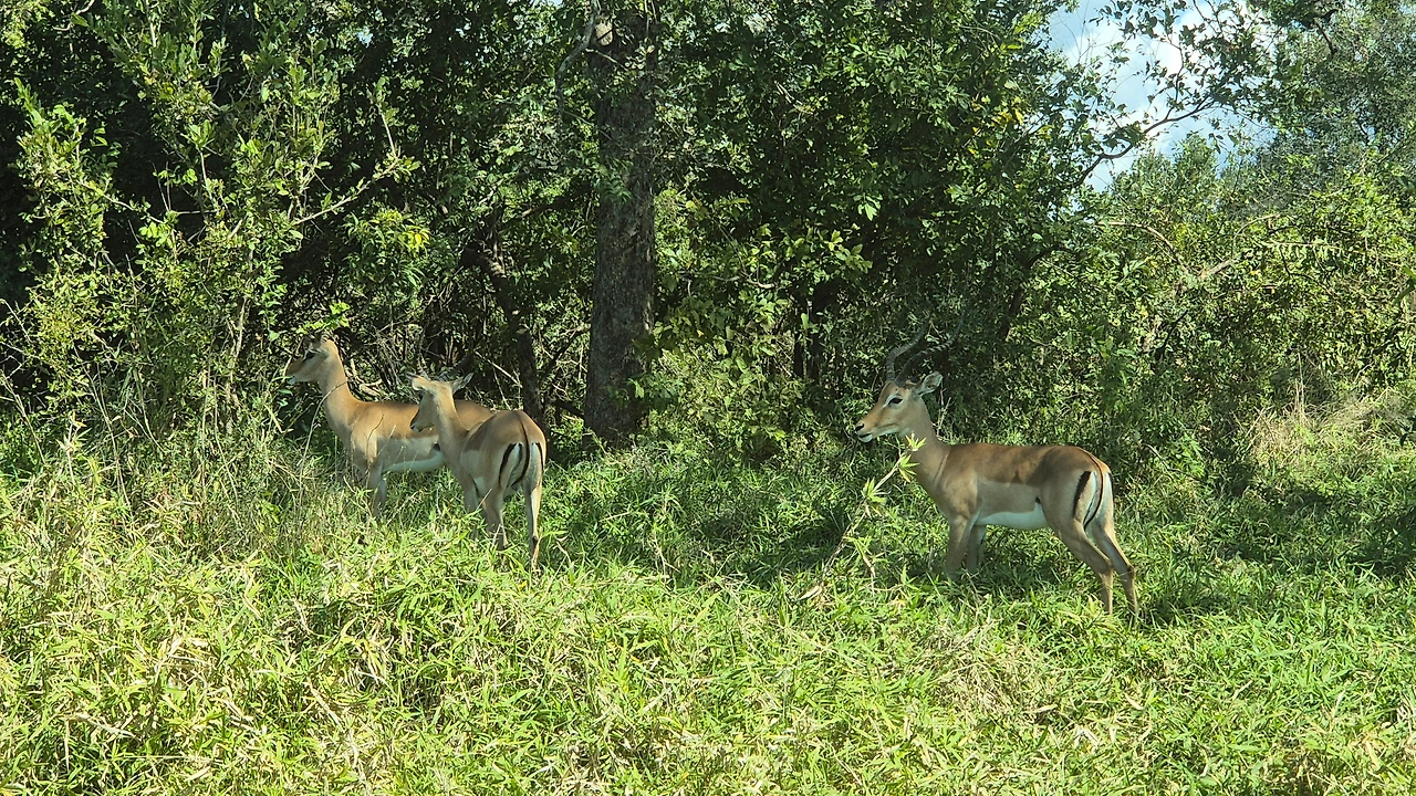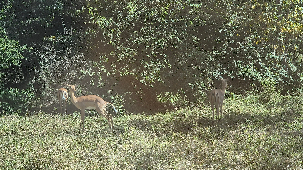 광활한 국립공원을 달리기 시작했다. 왼쪽으로 사슴 떼가 나타났다. 잠시 멈추어 사진을 찍고 감상을 하다가 다시 언덕을 오르내린다. 나무 수풀 뒤에 언뜻 코끼리가 보였다. 속도를 줄이고 좀 더 잘 보이는 자리를 찾아 조금씩 움직여본다. 아기 코끼리와 한 무리의 코끼리들이 수풀 뒤에서 꾸물댄다.