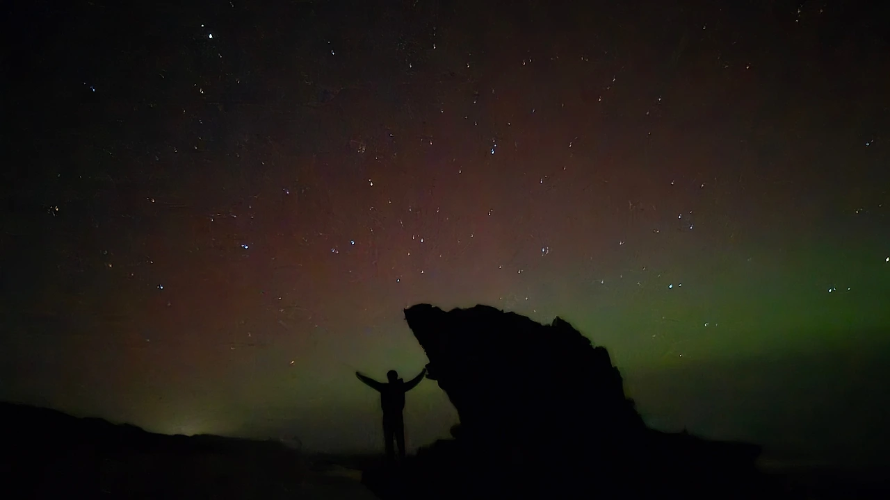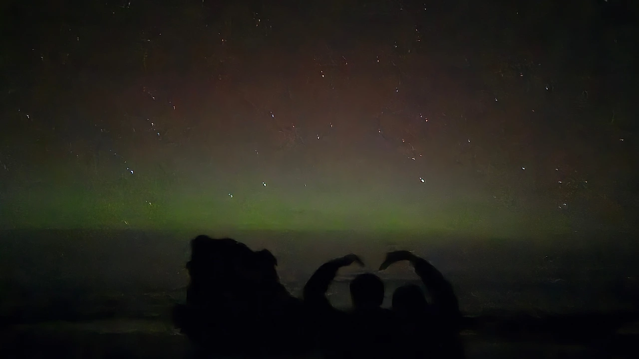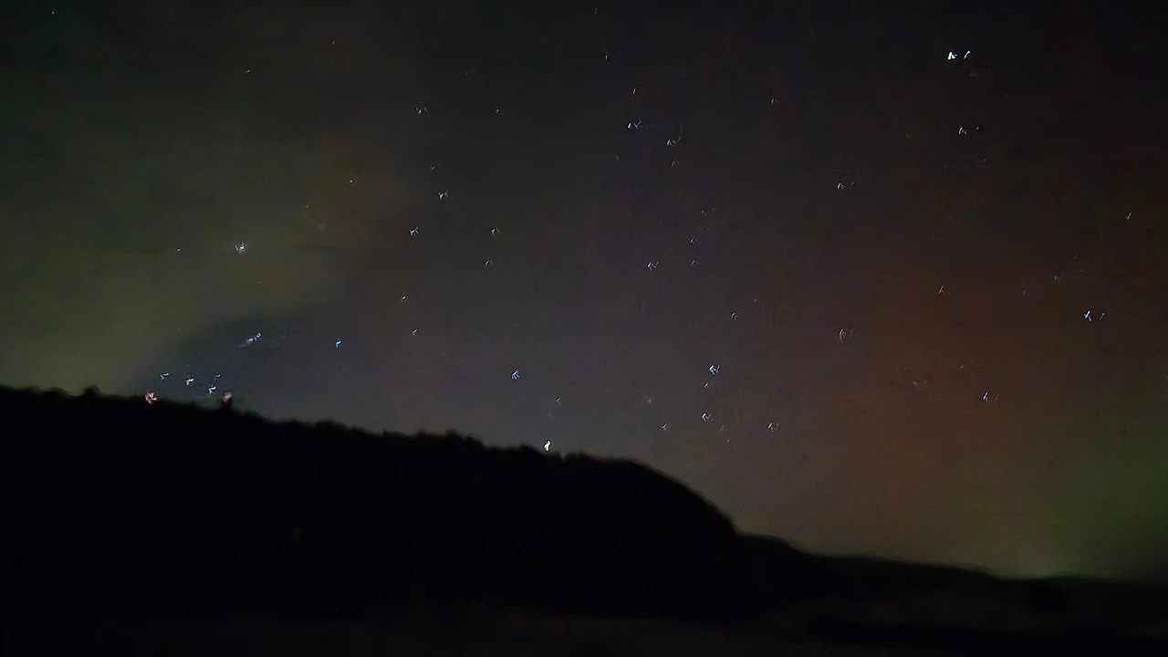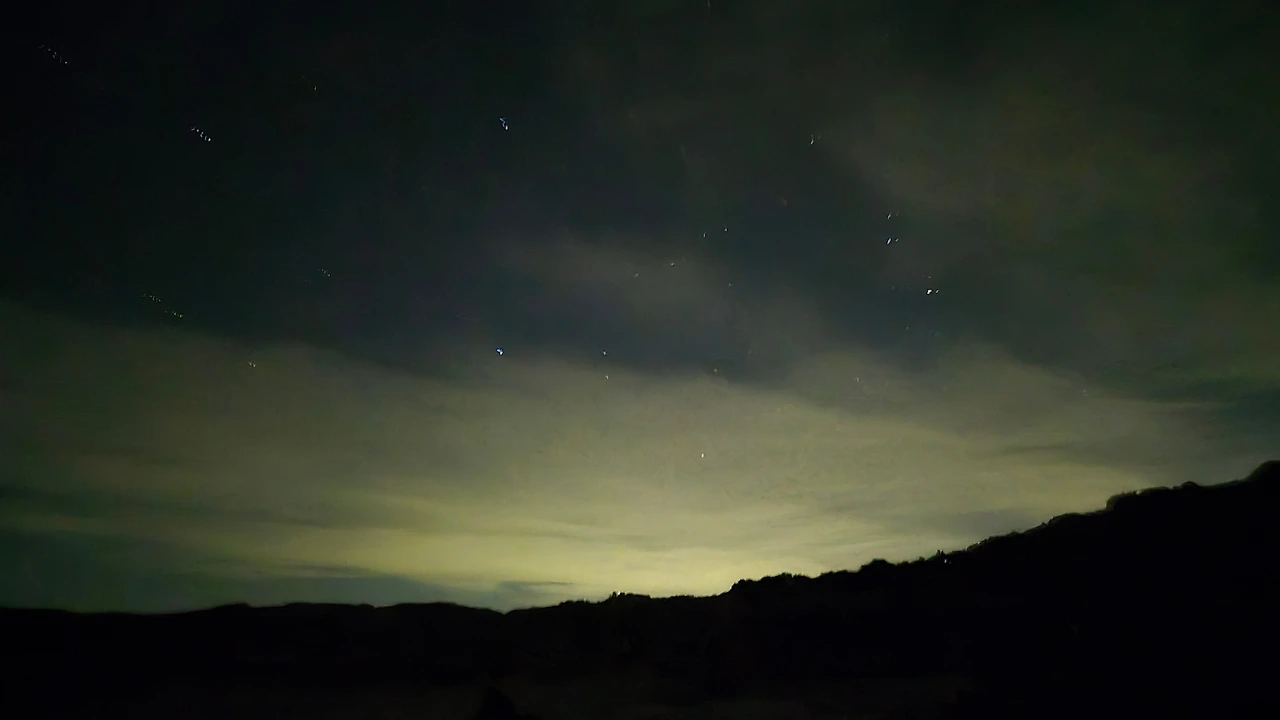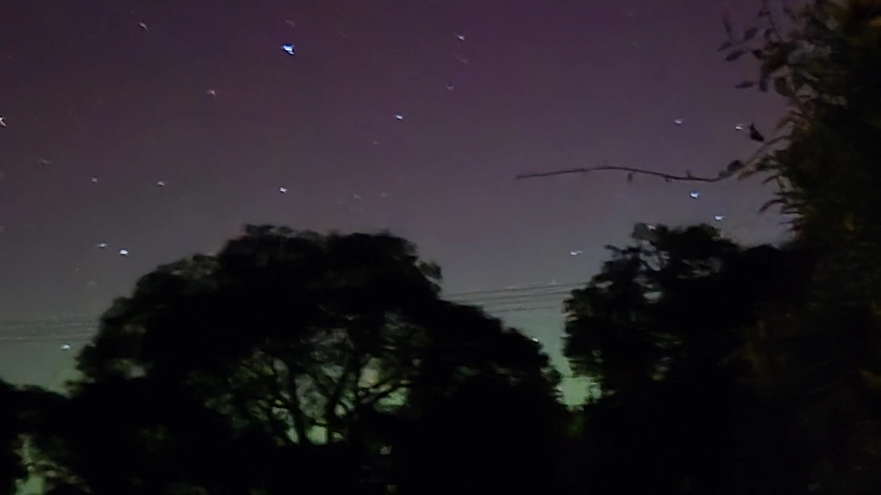 남편이 뒷마당에 나가 사진을 찍기 시작했다. '아.. 왜 저러실까.. 깜깜한 밤에 여기서 뭐가 보인다고...' 그런데 갑자기 오로라가 찍힌다며 놀라 뛰어 들어왔다. 우리 가족은 다 같이 뛰쳐나가 각자의 핸드폰으로 사진을 찍어봤다. 내 폰은 갤럭시 S20였다. 아무런 설정 없이 나이트 모드로 그냥 찍었다. 세상에.. 선명한 칼라의 무언가가 모두의 폰에 나타났다.