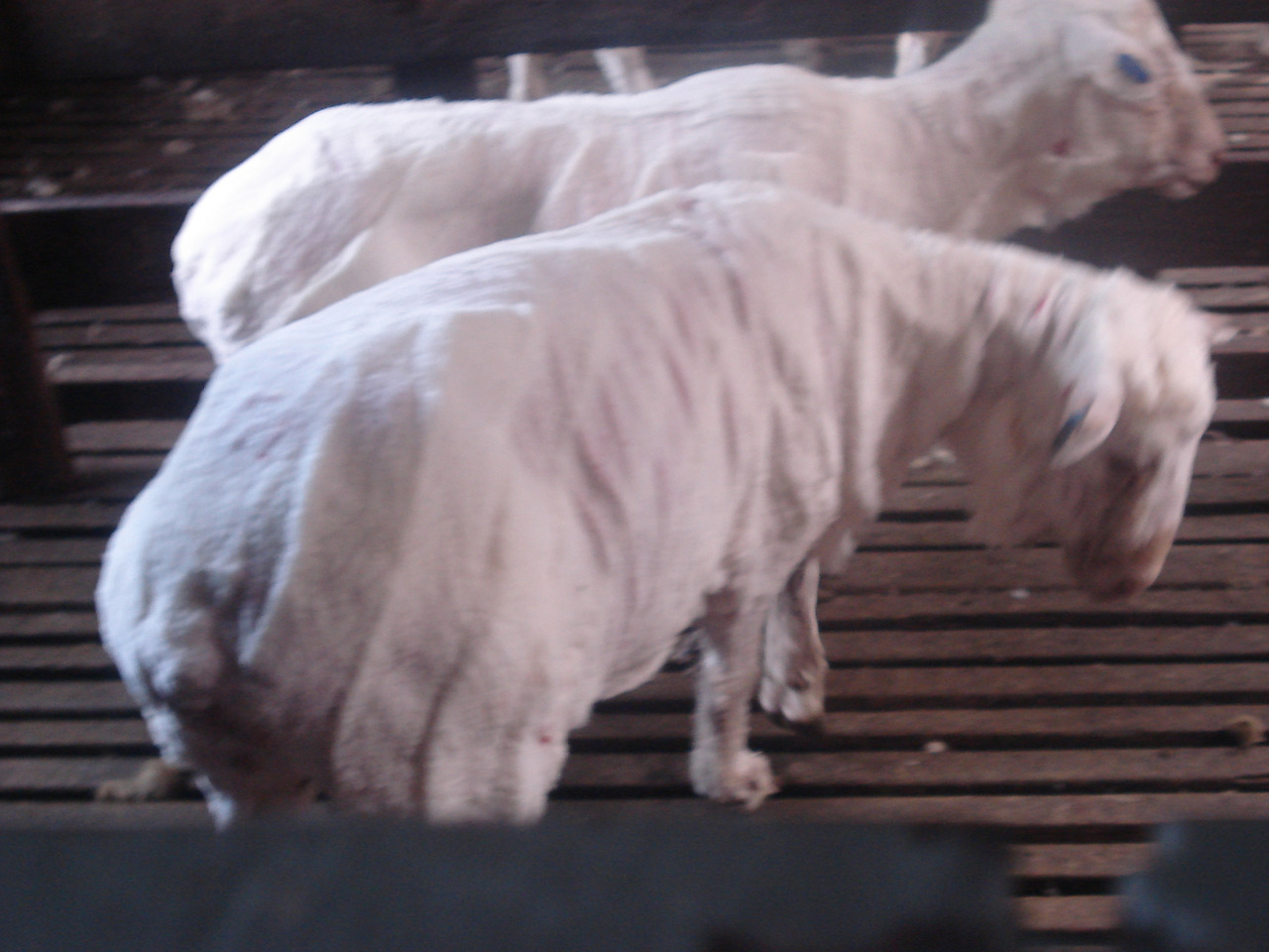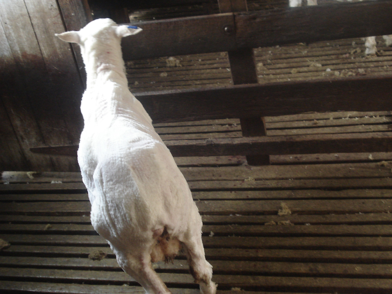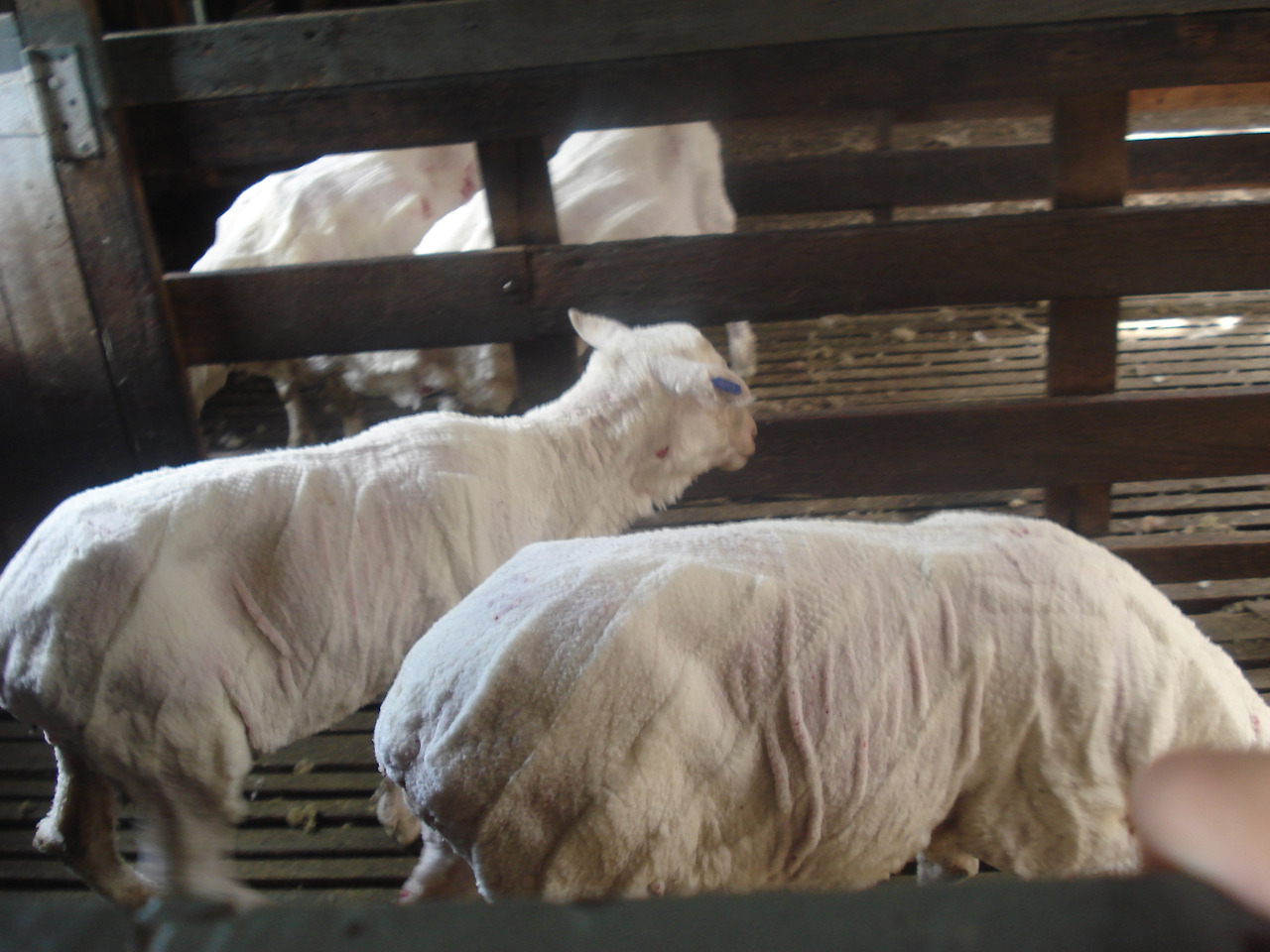 쉬어링을 마친 양들은 갑자기 반쪽으로 왜소해진다.^^ 또 무척 하얗다. 원래 양털은 하얗지만 얘들이 밖에서 생활하는지라 털 켜켜이 때가 까맣게 끼어 엉키고 냄새도 만만치 않다.