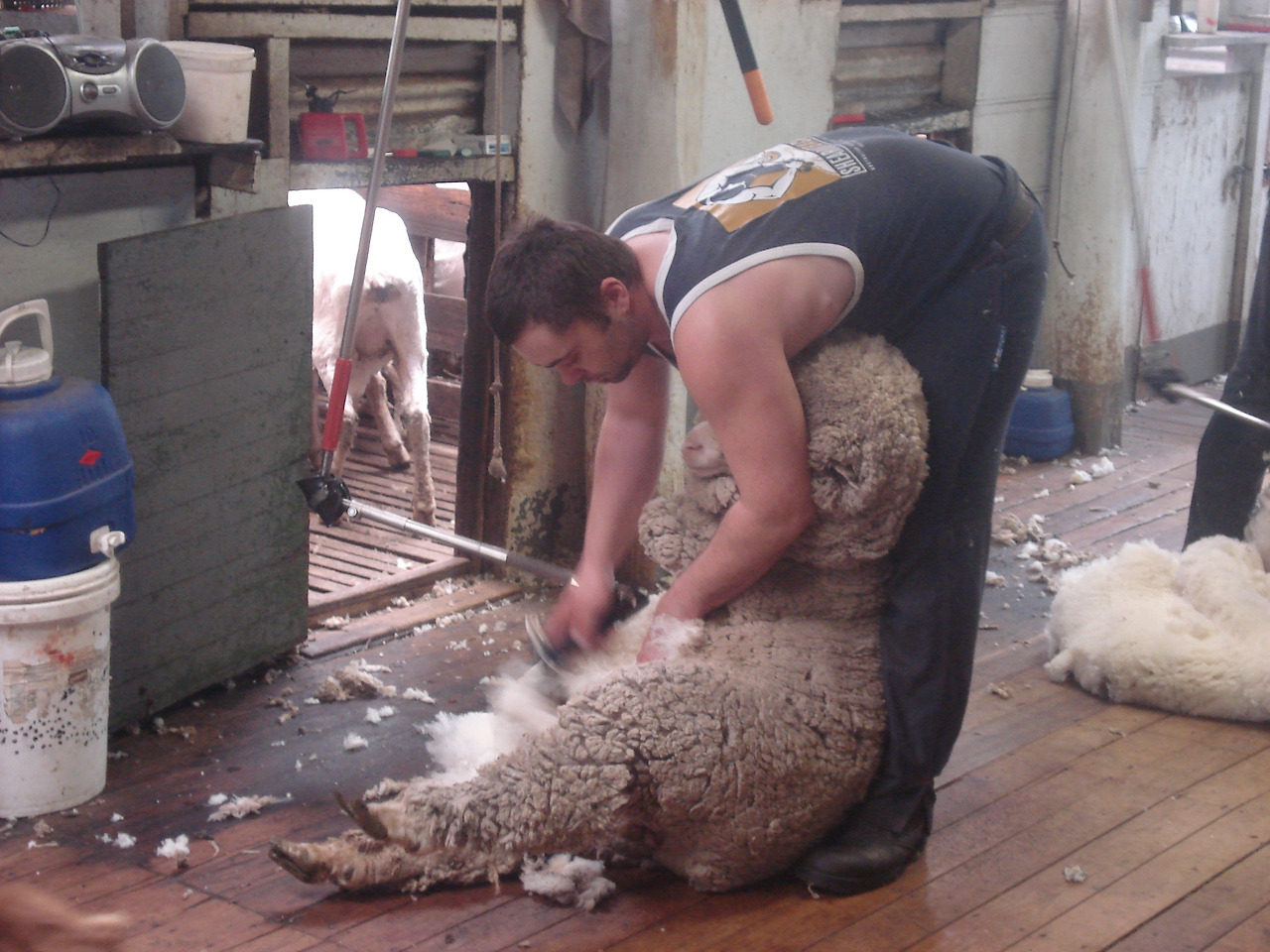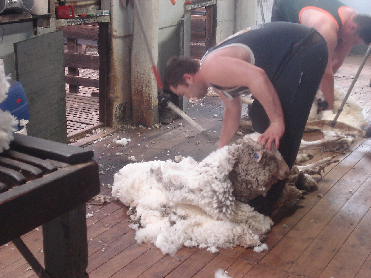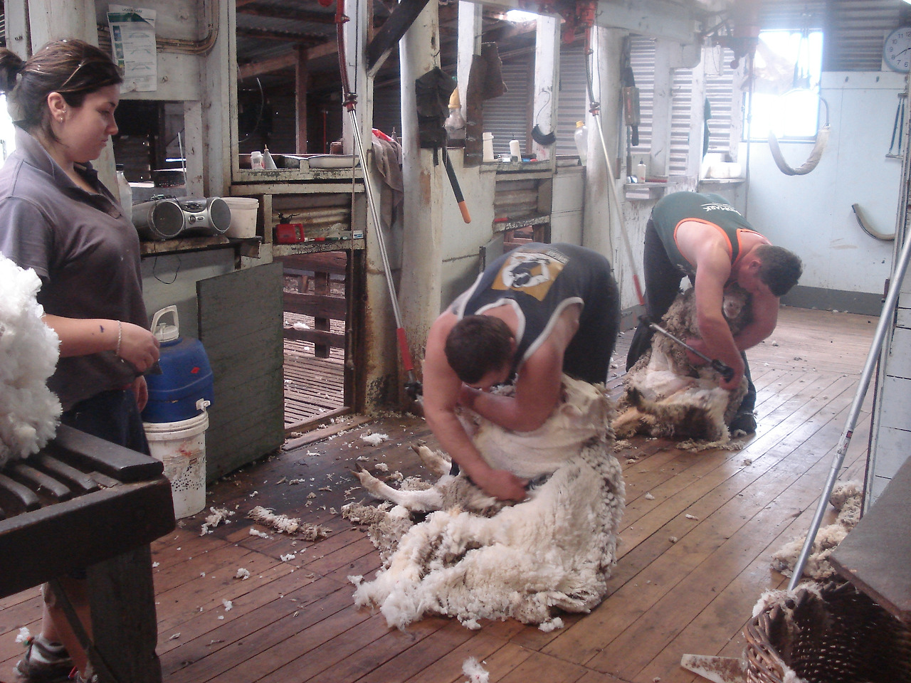 쉬어러는 시간당 2-30마리의 양털을 깎고 하루 7시간 정도 일한다. 농장 규모에 따라 쉬어러는 2-3명에서 7-8명까지도 고용되고 보통은 3-4일 혹은 일주일 정도에 일을 마친다. 수천 마리의 양털을 깎는데 걸리는 시간이 생각보다 길지는 않은 듯. 쉬어러는 시간당 받는 급료가 높지만 등뼈가 부러질 만큼 (back bone breaking work) 노동 강도가 세기로 유명하다. 양들이 무겁기도 하지만 하루 종일 몸을 직각으로 꺾고 일해야하니 허리가 얼마나 아프겠는가..