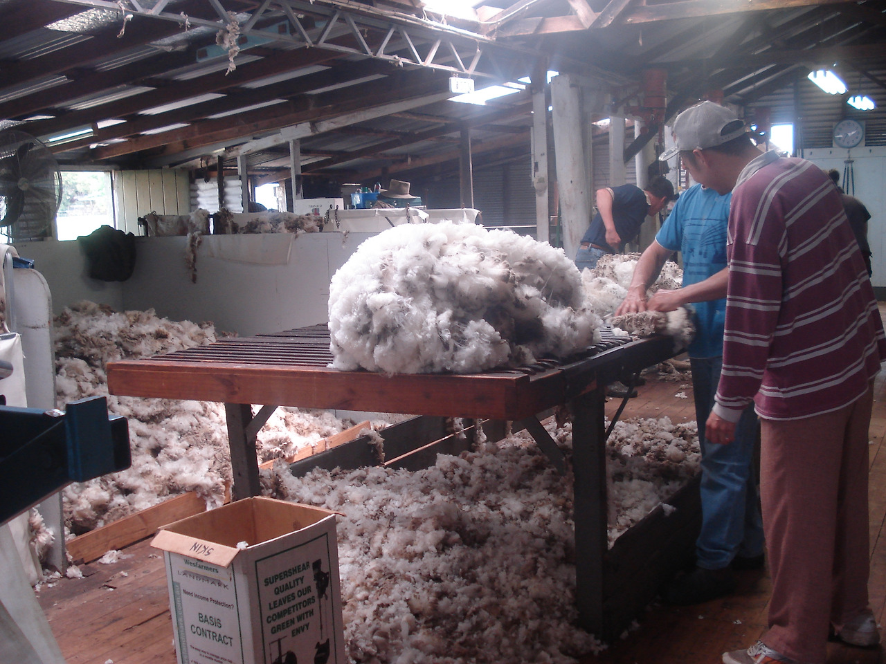 어쨌거나 광활한 목장 한가운데 세워진 오두막 안에 들어서는 순간 후덥 하고 매캐한 공기와 누린내 똥냄새 등이 범벅이 되어 숨쉬기도 어려울 지경인데 3일 안에 이 모든 양들의 털 깎기를 끝내야 하는 상황이라 매우 바빴다. 쉬어링 시즌이 되면 양을 치는 목장들은 정말 바빠진다. 필요한 인력을 추가로 고용함에도 온 가족이 쉬어링에 매달릴 뿐만 아니라 안주인은 시간에 맞춰 모닝티(간식) 점심 애프터눈 티(새참)를 일꾼들에게 제공해야 하기 때문이다. 그래서 시즌이 끝나면 다들 기진맥진.