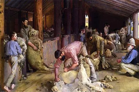 Shearing the Rams is an 1890 painting by Australian artist Tom Roberts. Bing Image.