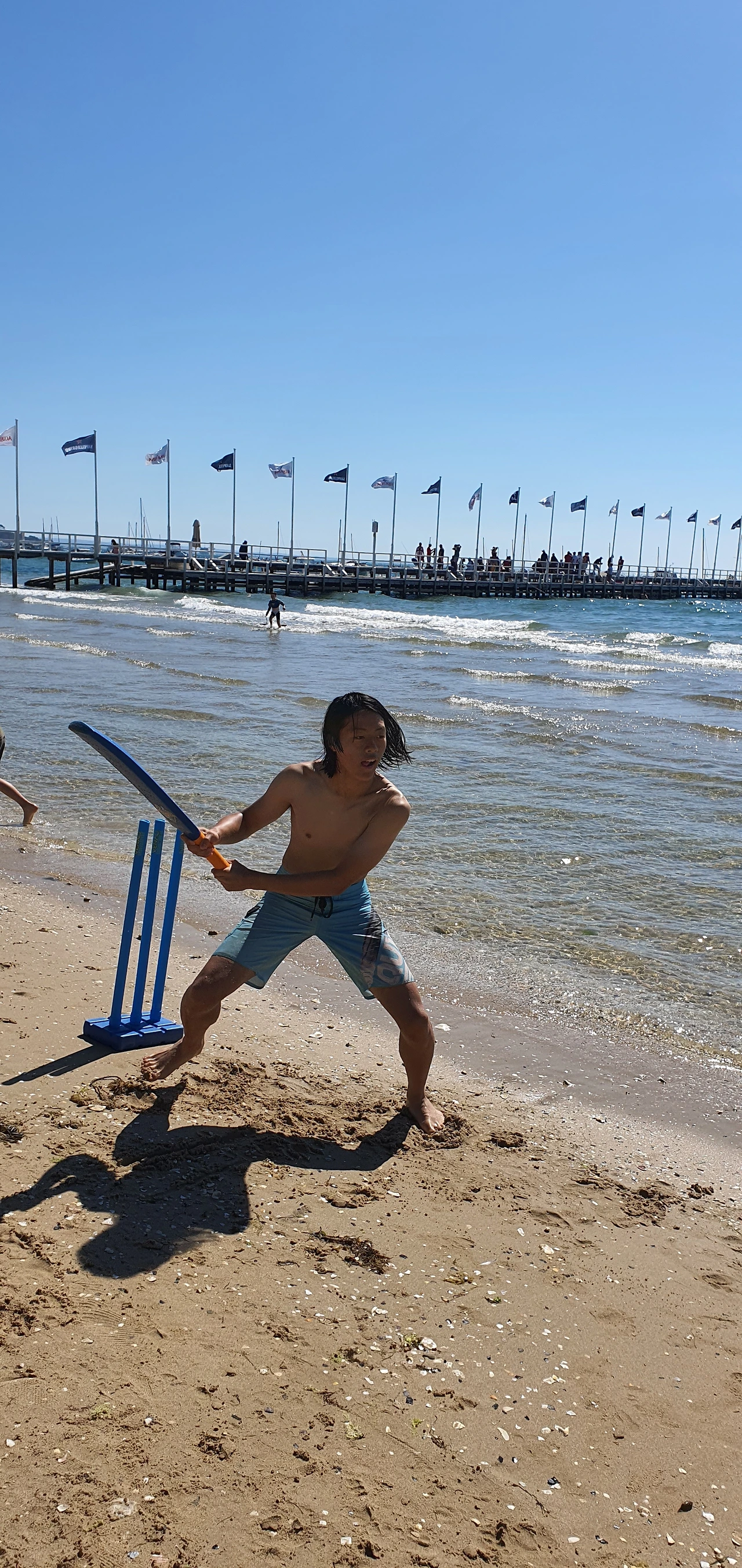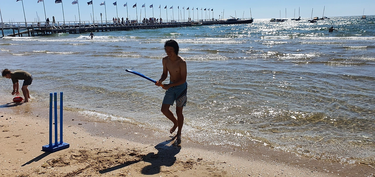 사정이 이러하다 보니 호주 아이들은 모이면 운동장에서 뒷마당에서 크리켓을 하고, 여름엔 바닷가에서 비치 크리켓을 또 당연히 한다. 한나절 바닷가에서 공을 던지고 치고 달린다.