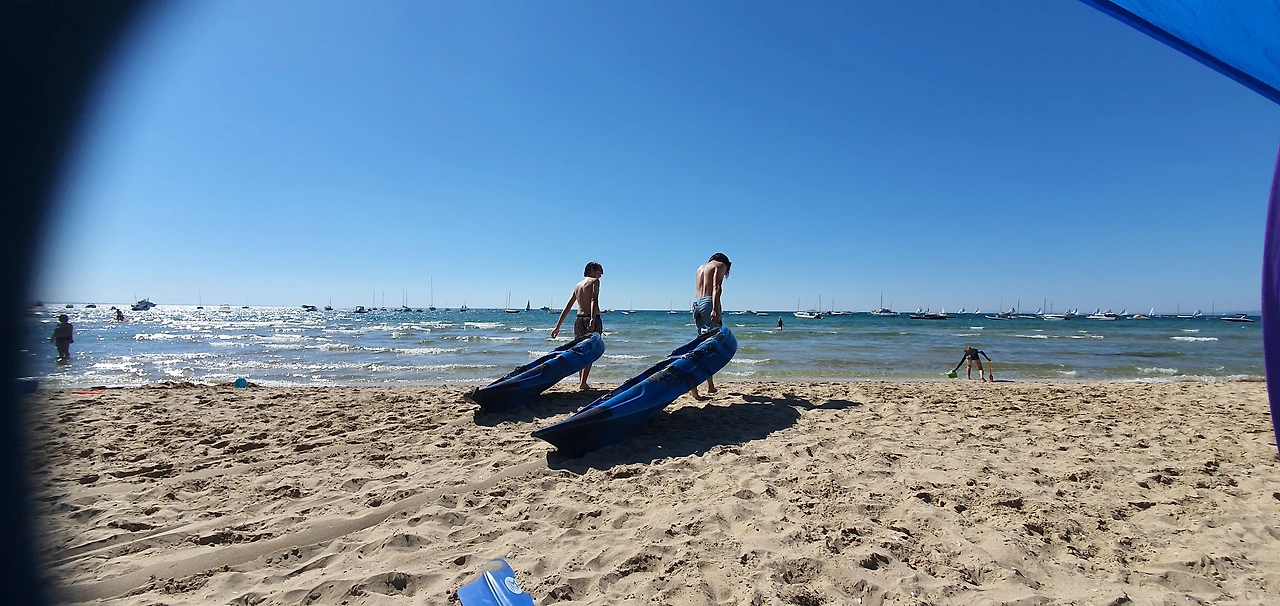 한 게임을 끝내고 카약을 타기로 했다. 바닷가 동네다 보니 한두 집 건너 한 집 꼴로 보트나 요트를 소유하고 있을 정도다. 우리도 올여름 카약 두대를 중고로 마련했다. 이웃이 이사를 떠나며 창고에 있던 것을 급하게 정리하고 싶어 했고, 우리는 정부로부터 코로나 위로금을 막 받았던 때였다. 몇 번 빌려 타는 가격으로 충당되던 중고가라 덜컥 사버렸다. 살면서 카약을 소유하게 될 줄은 정말 몰랐는데...