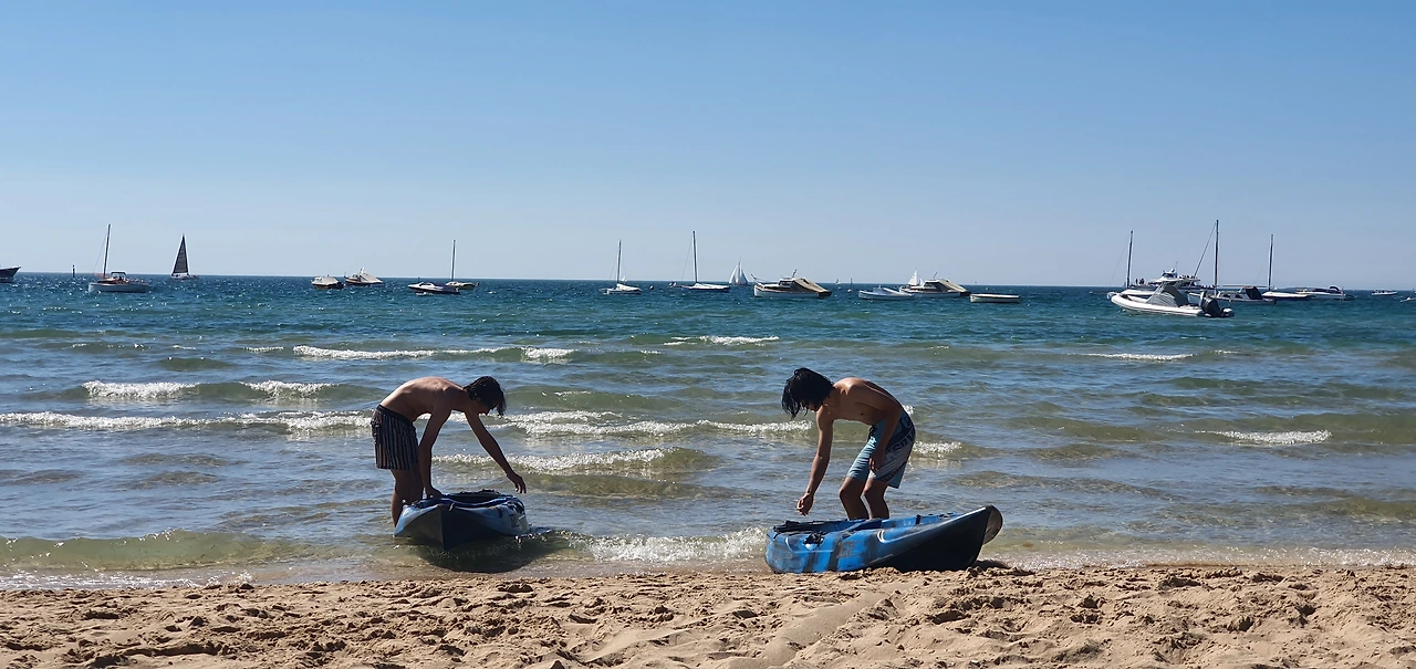 아이들이 카약을 타고 바닷가를 돌아보는 시간이 점점 길어진다. 처음엔 눈앞에서 왔다 갔다 하는 정도였는데,