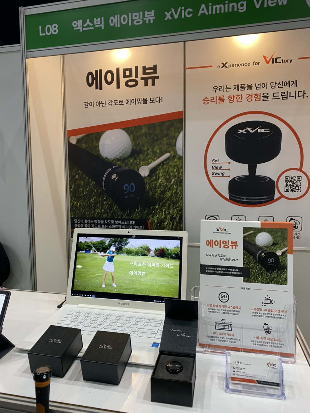 릴팝. 골프 어드레스 정렬장치. 요즘 열심히 개발중인데, 유사한 제품도 전시되어 있습니다. 에이밍뷰라는 제품인데, 생각보다 센서가 정밀했습니다. 문제는 클럽이 14개인데, 10만원 가까이하는 센서를 14개를 구입할 수는 없는 노릇이고, 참. 이걸 어쩐다? 드라이버에만 끼워? 고민이 될 듯 합니다.
