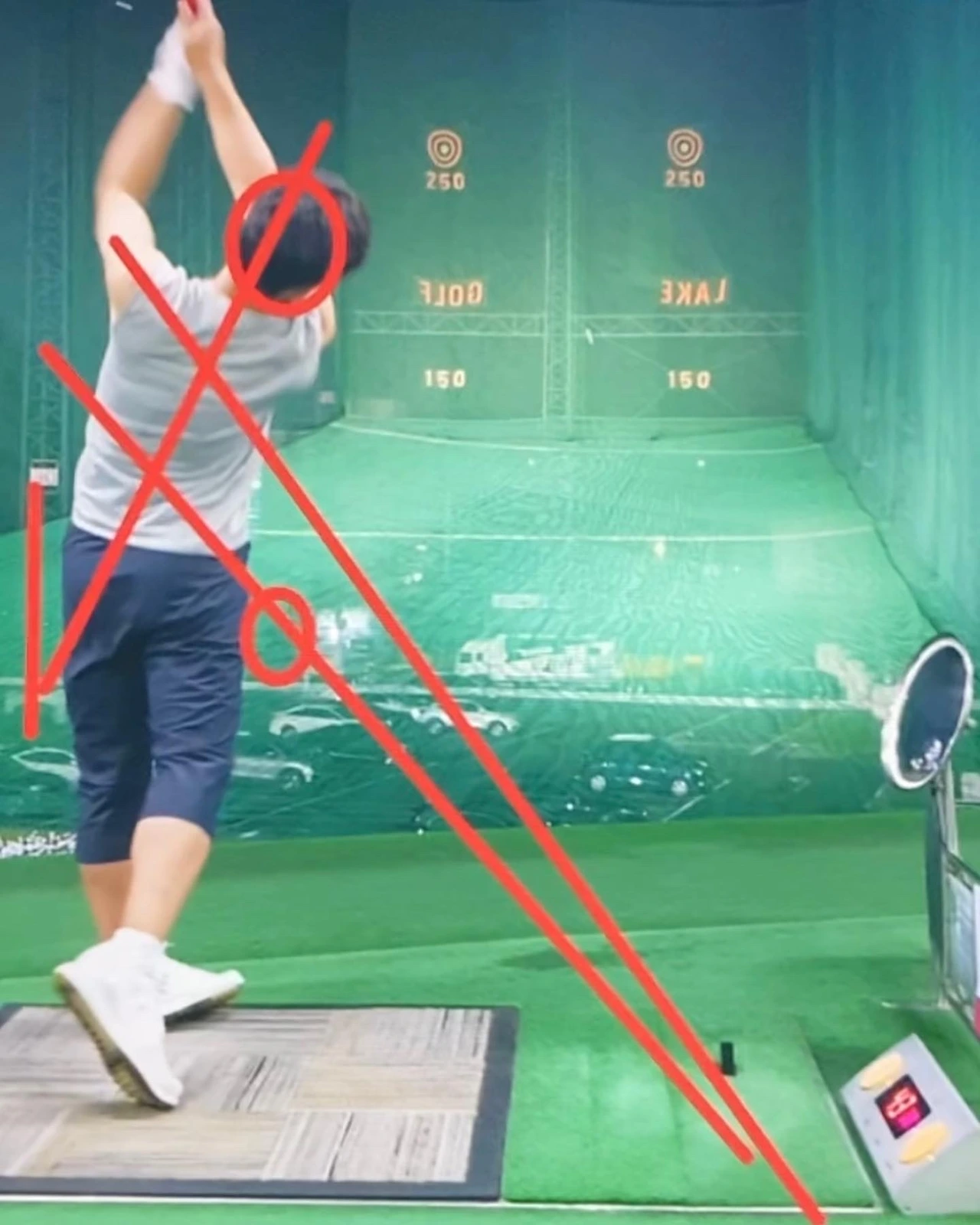 Ex. 임팩트 직후 왼팔을 접는다. not 치킨윙