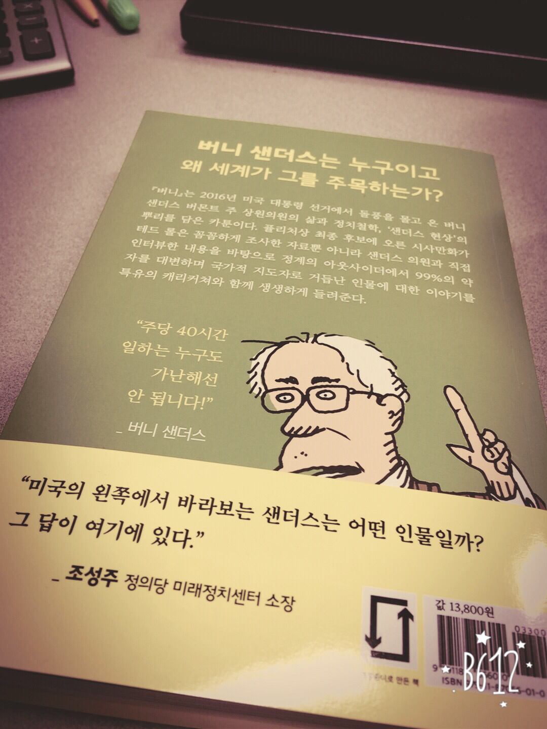 최근 국내에서 버니 샌더스의 카툰 책이 나온다는 소식을 접하고, 기쁜 마음으로 펀딩에 참여했습니다.