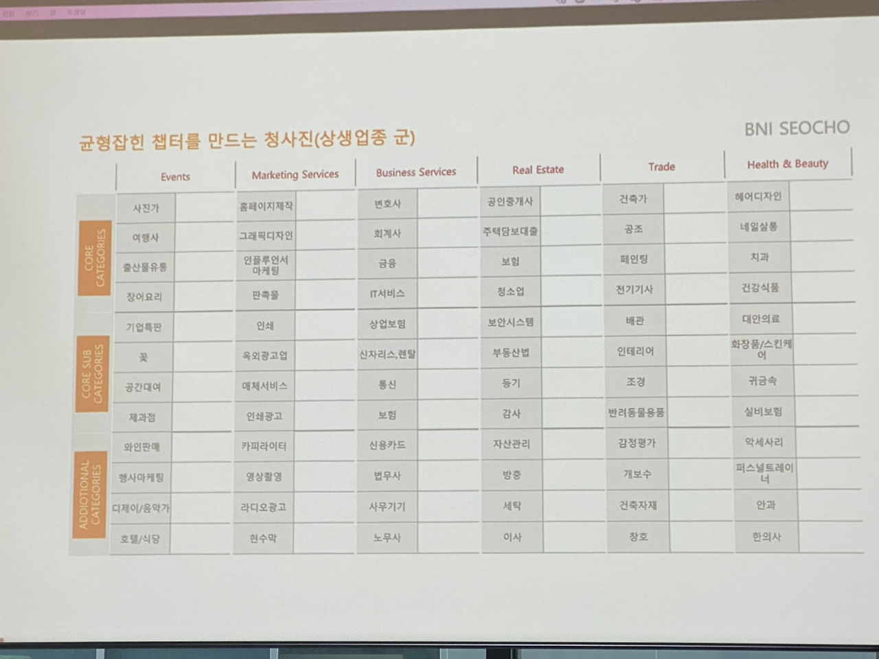 BNI라는 비즈니스 모임에서 지역 챕터 창립멤버로 참여하게 되었습니다.