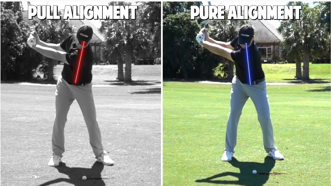 만약 어드레스에서 타겟쪽으로 혹은 너무 가운데에 척추가 위치하게 된다면, 백스윙탑에서 체중이동이 원활하지 않게 되거나 역피봇도 발생할 수 있다.