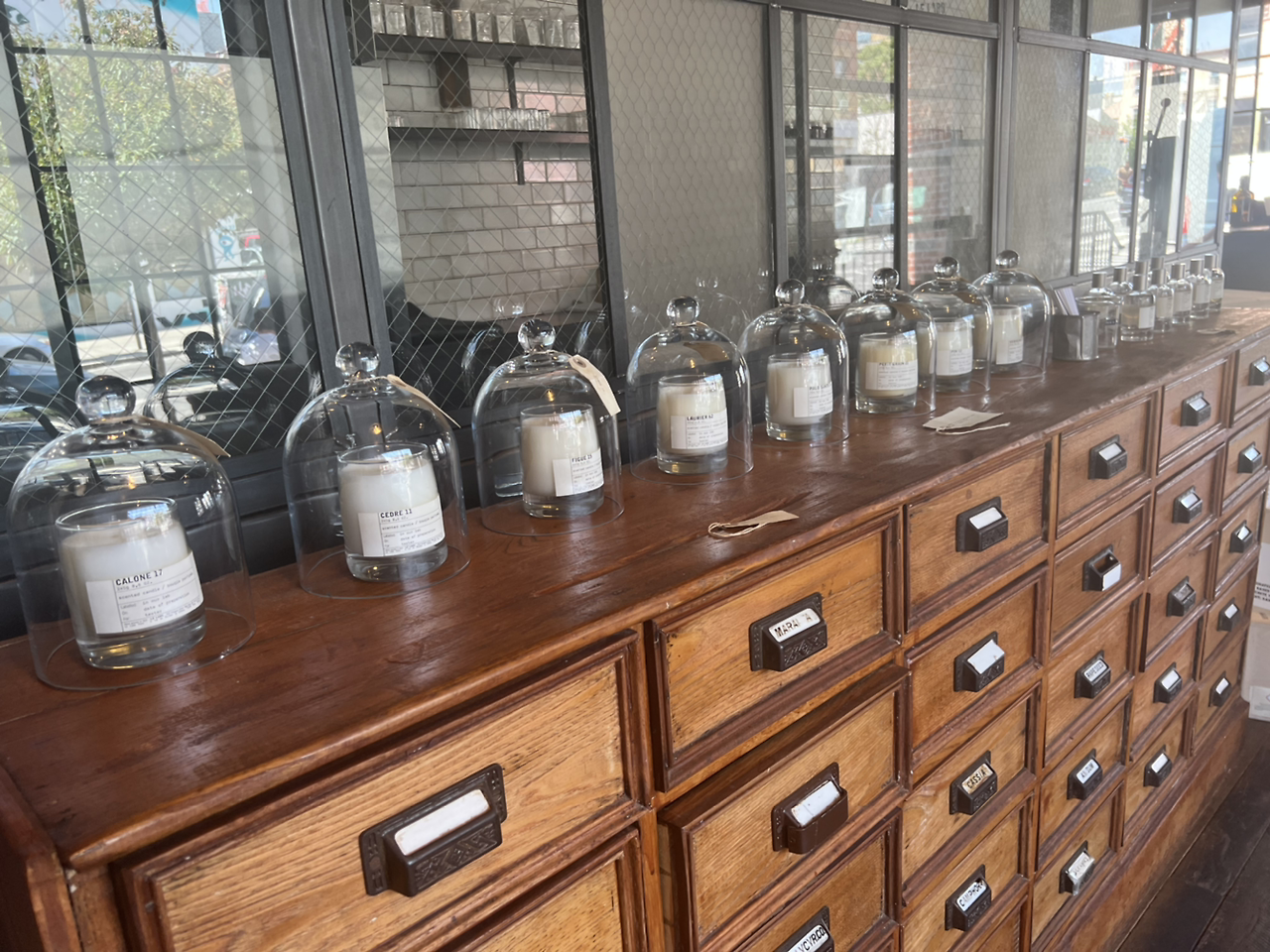 향수, 클렌저, 향초 등 모든 제품들이 꼼꼼하게 원료 설명, 원산지 등이 함께 디스플레이되어있는 모습은 화학 실험실 같은 멸균된 느낌도 나면서 르 라보의 장인정신을 느끼게 합니다 - 향도 뭔가 굉장히 클린 하면서 약품, 허브 냄새 비슷한 느낌이 나는 향들이 대부분으로, 자기 관리에 철저하고 정도 이상으로 깔끔한 사람들이 쓸 것 같은 그런 느낌...