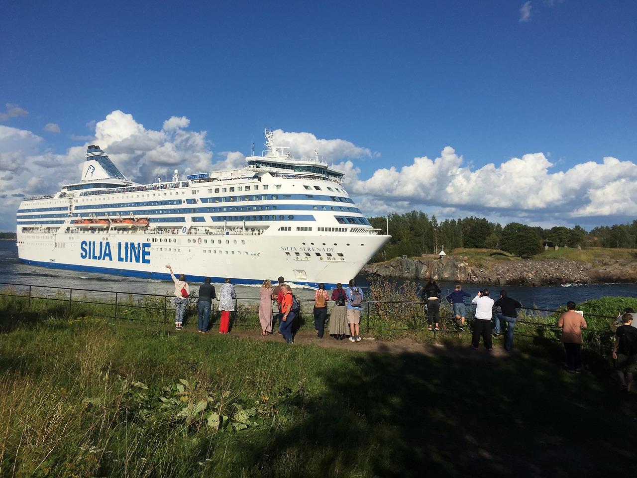실야 라인을 보고 손을 흔들어주는 핀란드 수오미 섬 관광객들