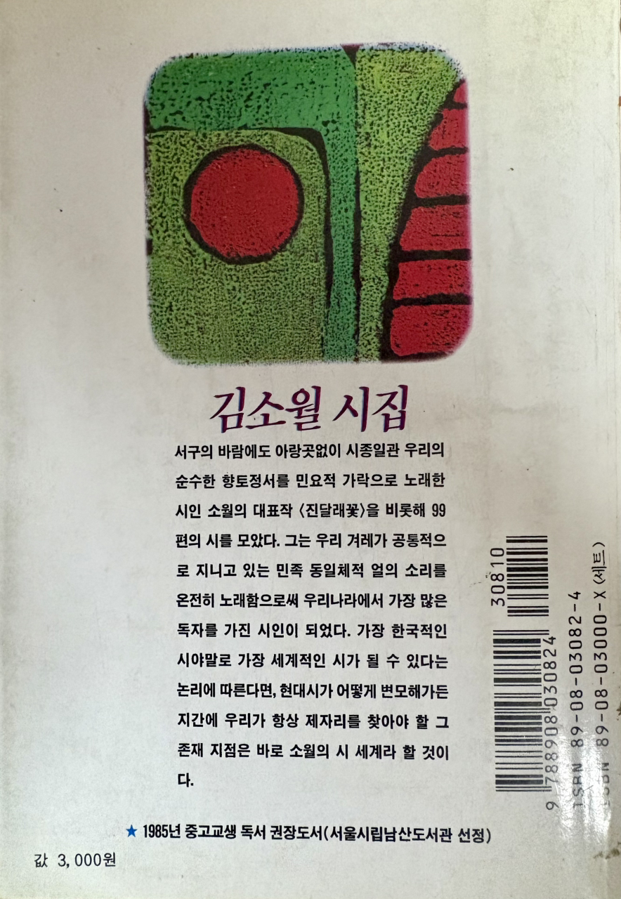 중학교 3학년이 되자 방학이면 서울 큰집에 며칠씩 머물렀다. 큰집에 가면 광화문에 있는 교보문고나 종각의 영풍문고 같은 대형서점에 갔다. 갈 때마다 설렜다. 동네 도서관에서 만날 수 있는 책들의 규모와는 비교도 안 될 만큼 책이 가득했기 때문이다. 주머니가 가벼웠던 나는 얇고 값싼 시집을 골라 들었다. 그때 산 김소월 시집은 지금도 책장에 있다.
