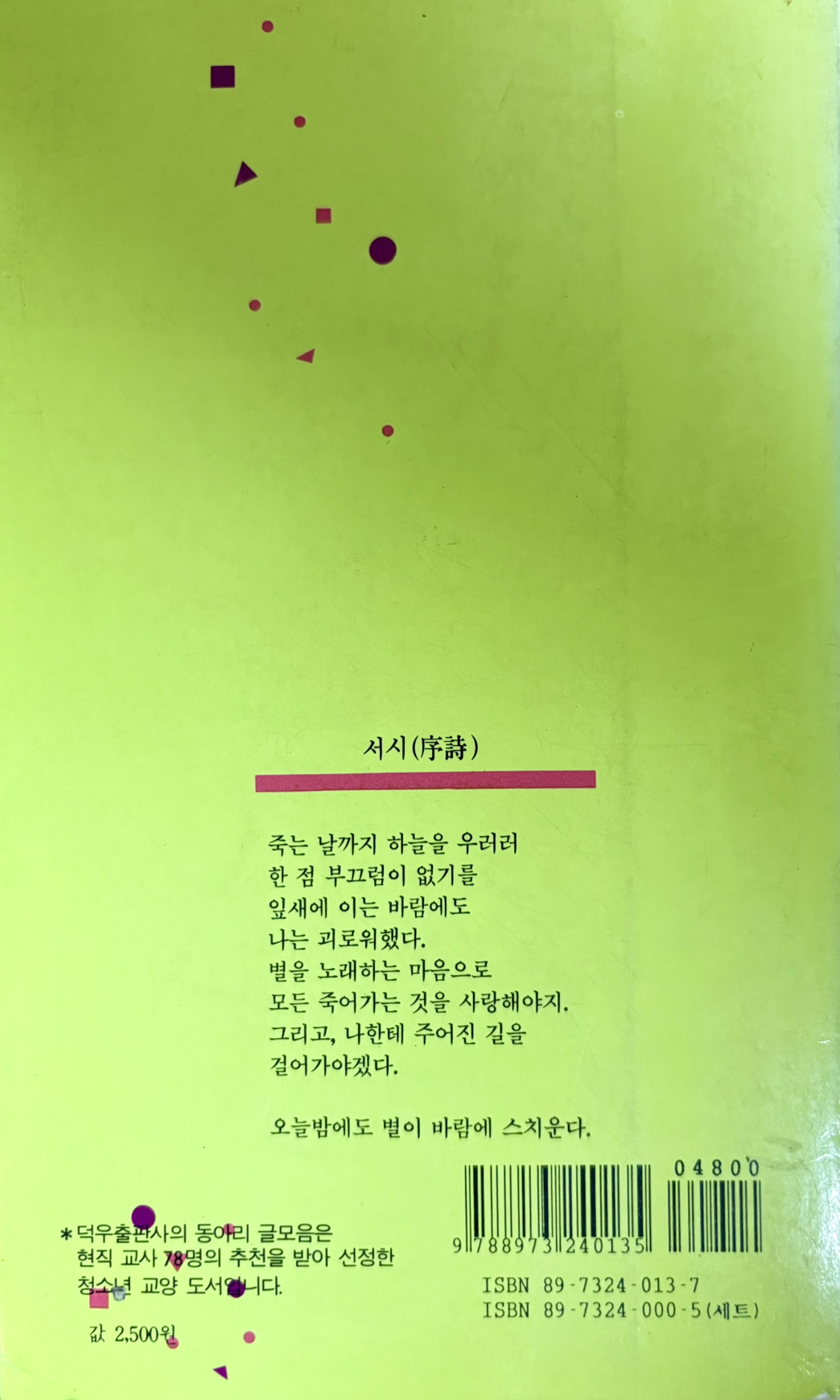 당시의 내가 김소월, 김영랑, 윤동주 같은 일제강점기의 시인들을 좋아했던 이유는 마음의 바닥에 깔린 슬픔 때문이었을지도 모르겠다.
