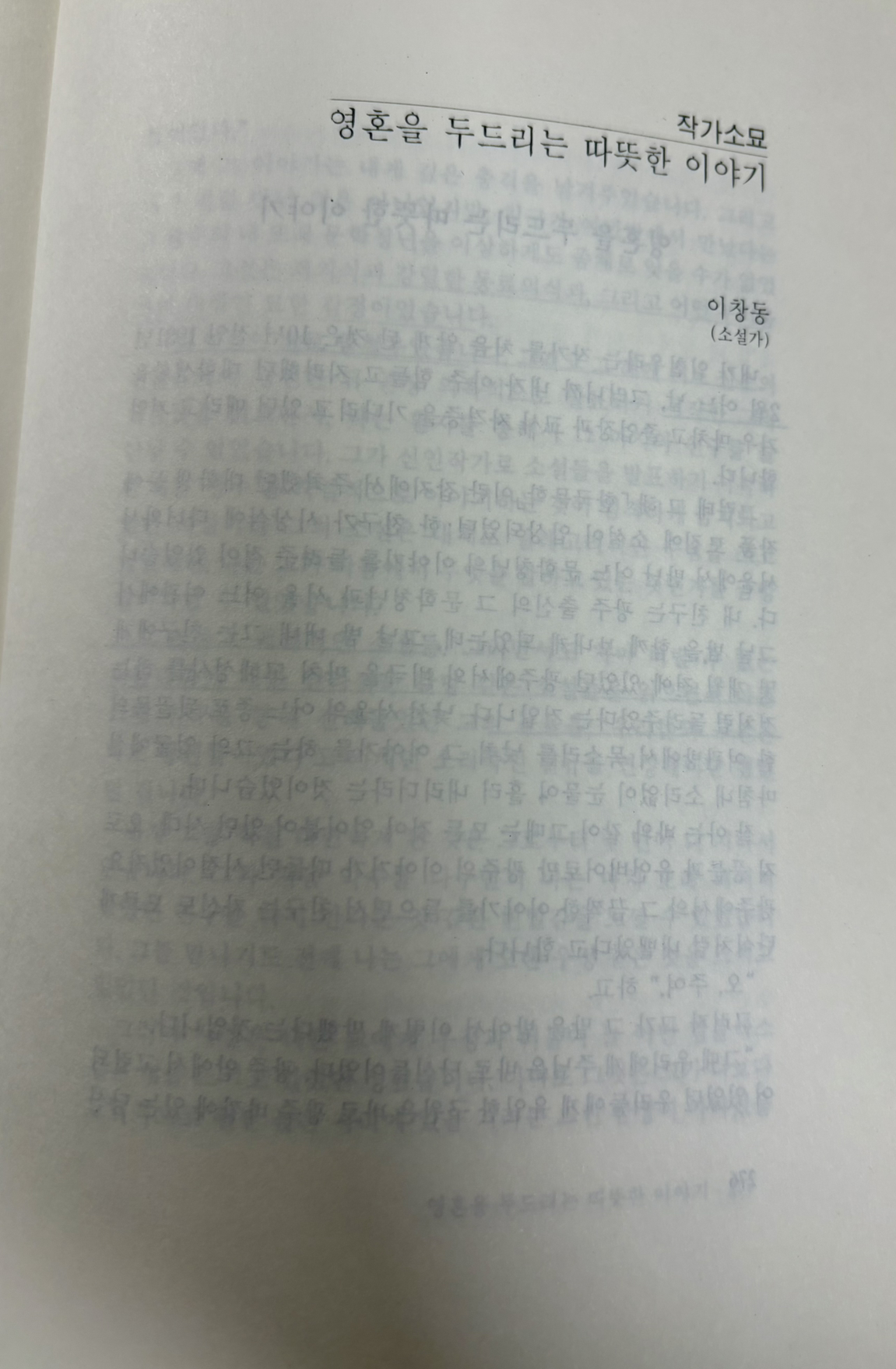 여담이지만, 이 책의 말미에는 이창동 소설가가 쓴 ‘작가소묘: 영혼을 두드리는 따뜻한 이야기’가 실려 있었다.