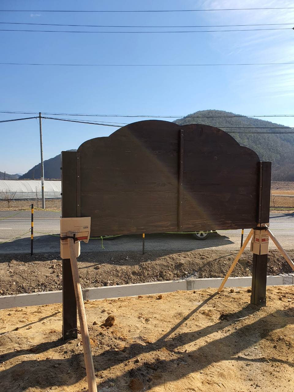 이렇게 모두 굳히고 나면 앞서 말한 것 처럼 대형 안내판의 경우는 지지대를 세워서 넘어지지 않게 고정을 하고, 작은 것의 경우는 접근하지 말라는 라인을 두르거나 안내문구를 남긴다. 여기까지 하면 설치 끝.