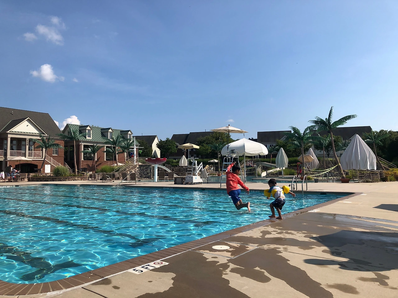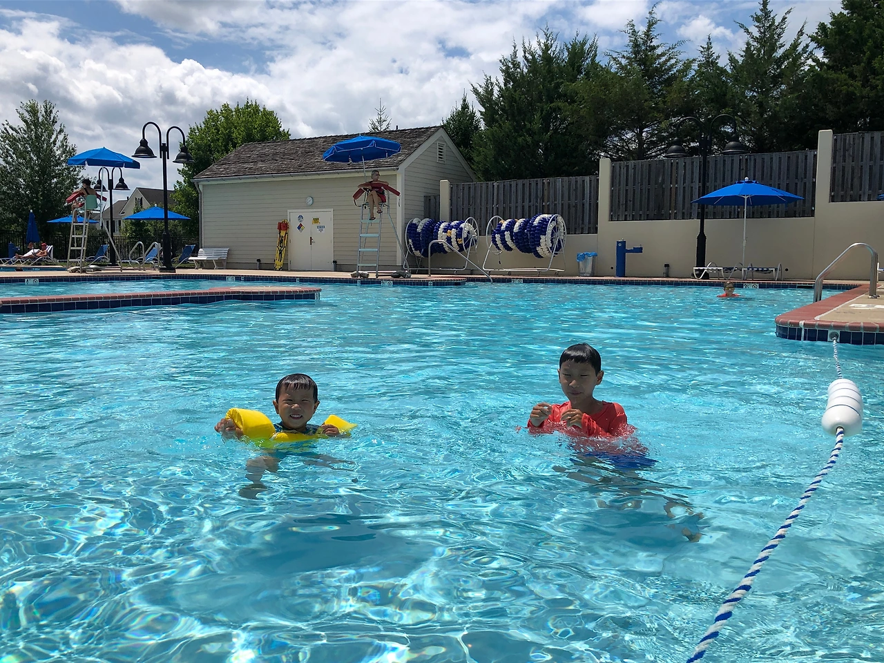 다행히 동네 수영장을 개방해주어 아이들과 일주일에 한두 번은 물놀이를 다녀왔다. 최소 24시간 전까지 가족 단위로 한 타임(2시간)씩만 예약이 가능했고, 입장 인원이 제한되어 있었다. 출입구와 샤워실, 탈의실에서는 마스크 착용이 필수였고, 회원 카드와 예약 내역을 체크하고 입장할 수 있었다. 샤워실을 이용하는 사람도 없는 걸 보니 아예 수영복 차림으로 비치 타월만 챙겨 가서는 물놀이 후 그대로 타월을 두르고 집에 가서 씻는 것 같았다. 한 타임 당 50명으로 인원을 제한해 놓았는데, 주말에도 그 넓은 수영장에 네다섯 가족밖에 보이지 않았다. 여기 사람들도 수영장은 시기상조라고 생각했나 보다. 덕분에 우린 넓고 쾌적한 수영장을 전세내고 여름을 즐겼다.
