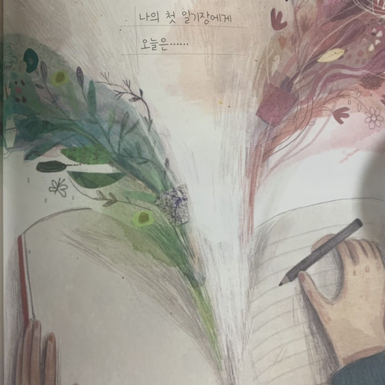리시가 재미있어 하며 또다른 이야기를 재촉하자 이제 할머니의 두번째 일기가 펼쳐진다. 학교가 끝나고 엄마에게 줄 들꽃을 꺾어 예쁜 꽃병을 찾았는데 부엌 선반 위 꽃병을 내리려다 흔들려 바닥에 떨어뜨리고 말았다. 다행히 한쪽 귀퉁이만 조금 깨져 있어 최선을 다해 조각을 붙인다. 꽃병이 깨지는 부분에서 함께 마음을 졸이던 리시는 두번째 일기를 듣고 나서 이야기 속의 아이 이름을 묻자 할머니는 ‘리시’라고 알려준다. 리시의 이름은 할머니에게서 따온 것이었고 일기장 속의 여자 아이는 할머니의 어린 시절이었음을 뒤늦게 알게 된 리시는 자신도 일기를 써 보고 싶다고 진짜 재밌을 것 같다고 말한다. 오랜 시절 할머니의 일상이 흥미진진한 이야기로 다가오다니 리시에게 일기쓰기에 대한 강력한 동기 부여가 되지 않았을까. 추억이 담긴 사진 한 장, 글 한 편이 나를 그 때 그 곳으로 데려가주는 것처럼 하루를 기록한 일기는 세월이 흘러도 그 때의 어린 나를 만날 수 있게 해준다. 일기가 아니었다면 리시는 할머니의 어린 시절을 그렇게 생생하게 만나지 못했을 것이다. 할머니의 일기를 들으며 함께 공명했던 그 소중한 경험은 책의 말미에 리시가 할머니와 일기장을 고르고 일기를 쓰는 것으로 이어진다.