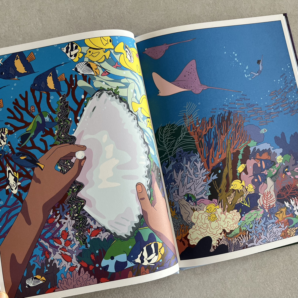 남태평양 푸른 바닷속 눈부신 열대어와 산호초 사이, 오랫동안 닫혀 있던 조개껍데기를 가만히 펼쳐본다.