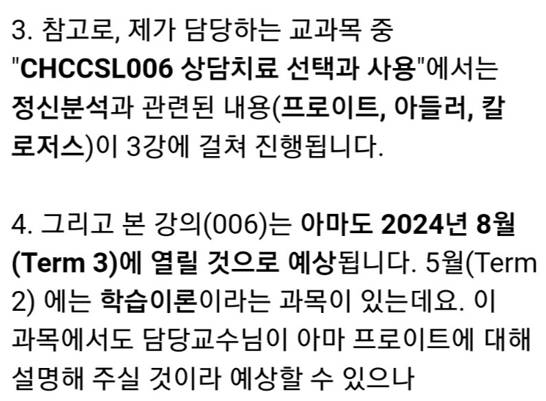 추가로 이곳은 이론보다는 실무를 주로 하는 과정이라서 기대가 큽니다. 책으로 이론을 공부하는 것은 이제 줄이고 실제로 사람들을 만나서 증상을 살펴보거나 상담 상황을 보고 싶거든요.