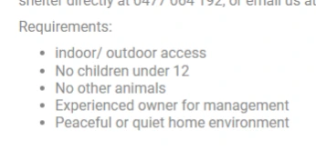 가끔 죽은 어미 곁에서 발견되거나 사고를 당한 어린 강아지들도 아주 없지는 않습니다. 하지만 예쁘다고 해서 신청한다고 해서 곧장 입양하지는 못합니다. 개 품종이나 개체 성향을 고려해서 정부 관리사가 정해 놓은 규정을 만족시키는 신청인에게만 허락합니다. 가령,