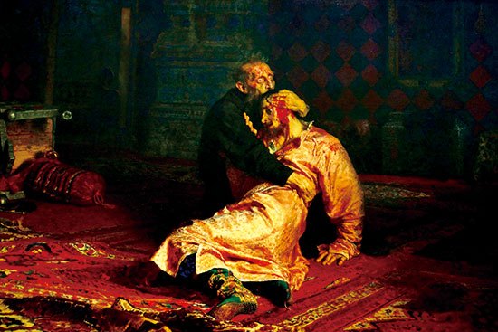 19세기 러시아 사실주의를 대표하는 화가, 일리야 레핀은 아들을 죽인 이반 4세를 캔버스에 표현했다.