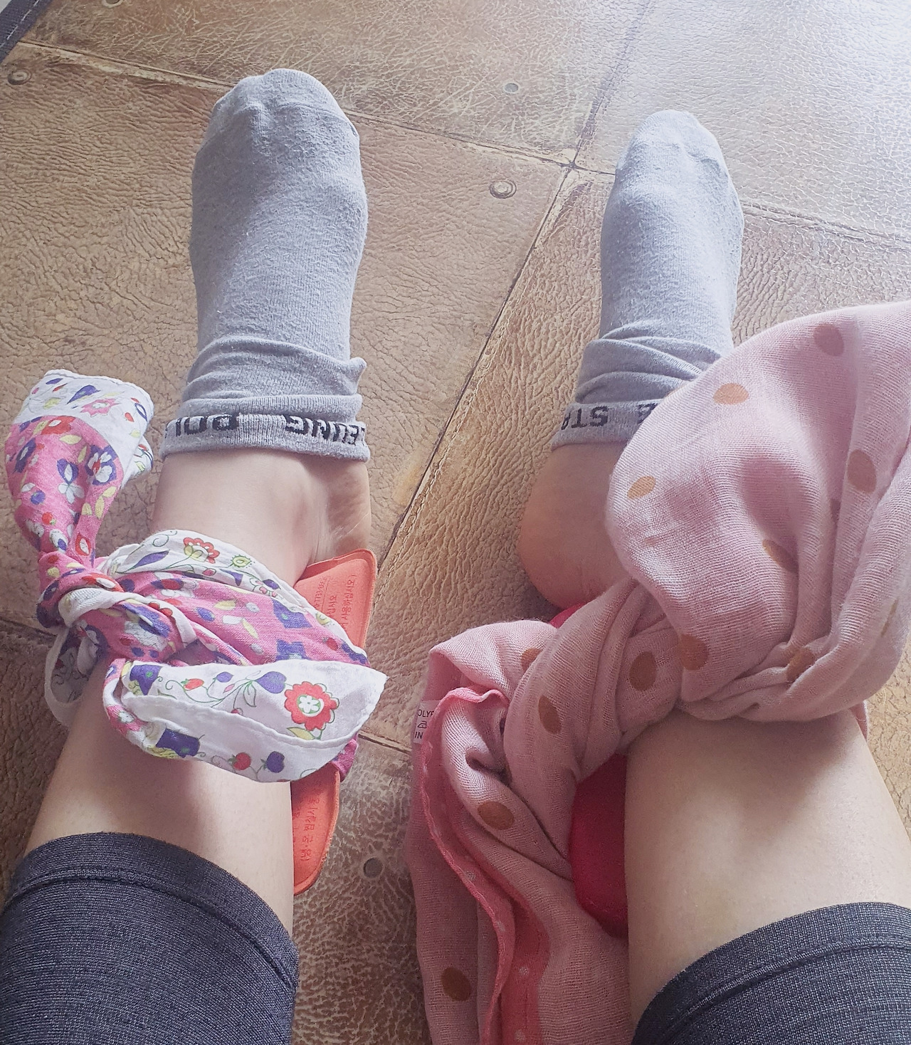 족부 통증으로 아이스팩을 아예 발에 묶어놓는 나...