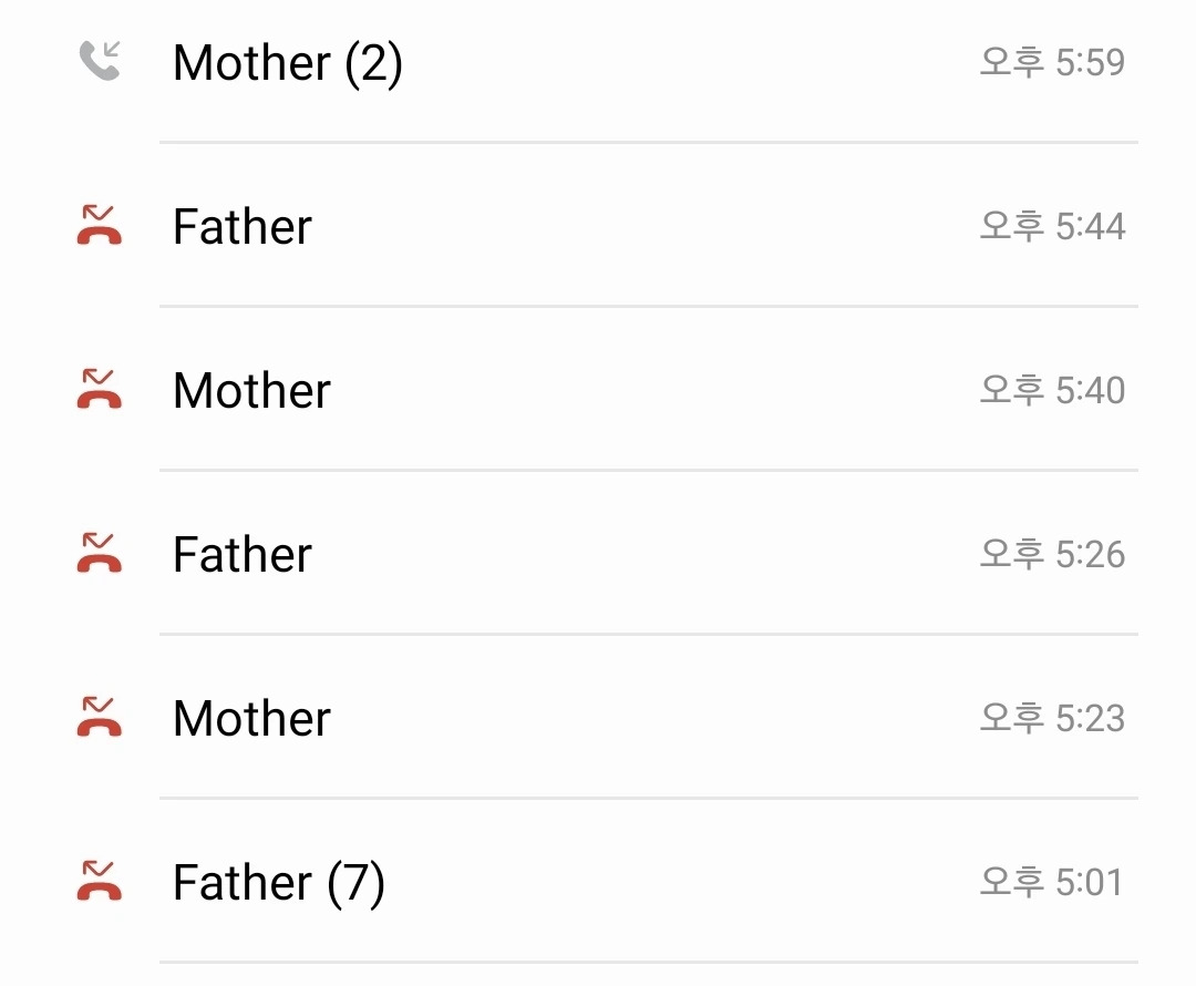 부재중 11통...저의 아픔이, 그들에게 걱정이라는 짐을 드리는 거죠.