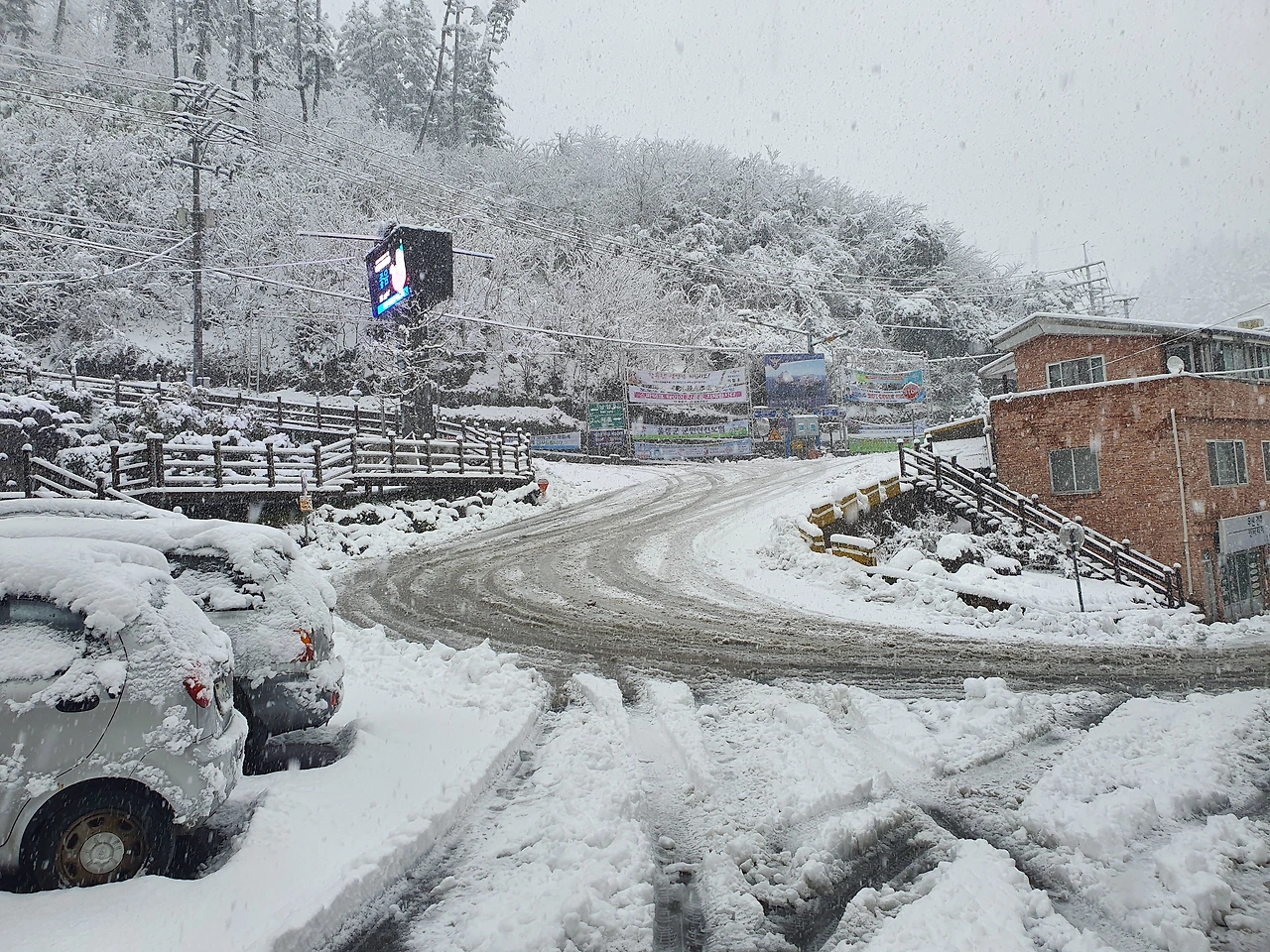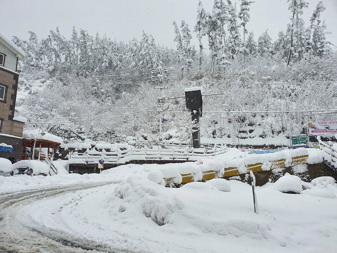 제설작업을 한 울릉 중심가인데도 눈이 오면 이 정도입니다.