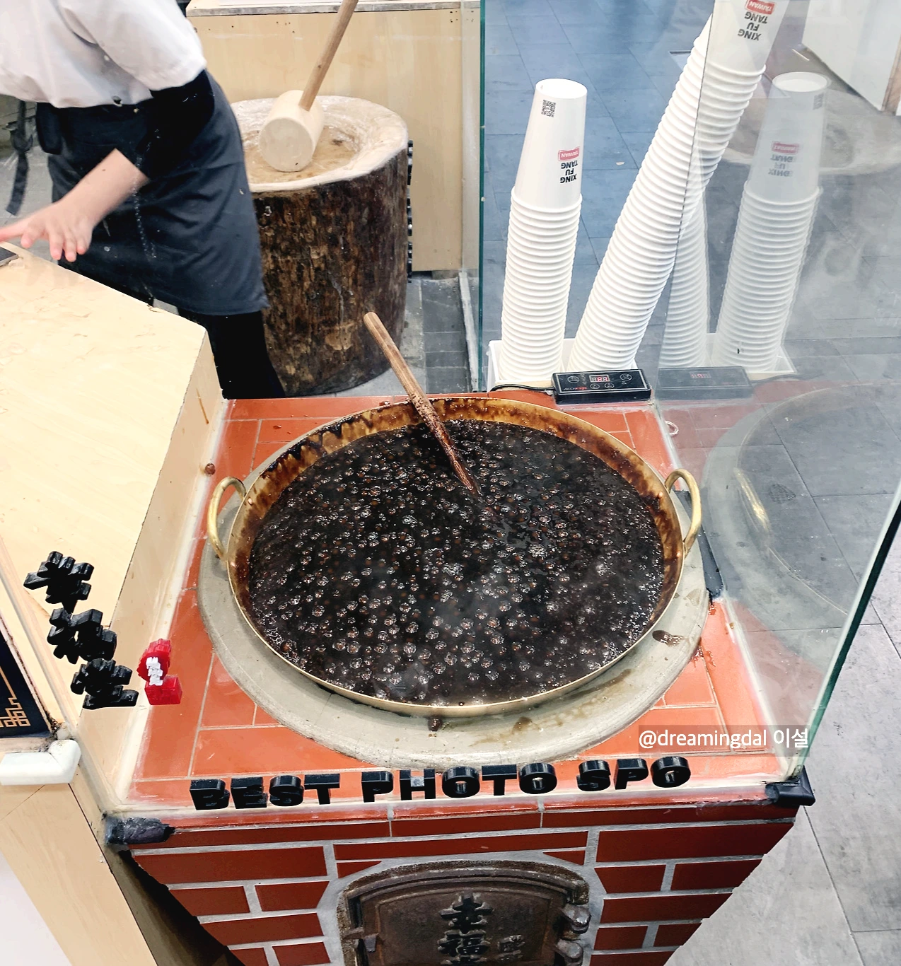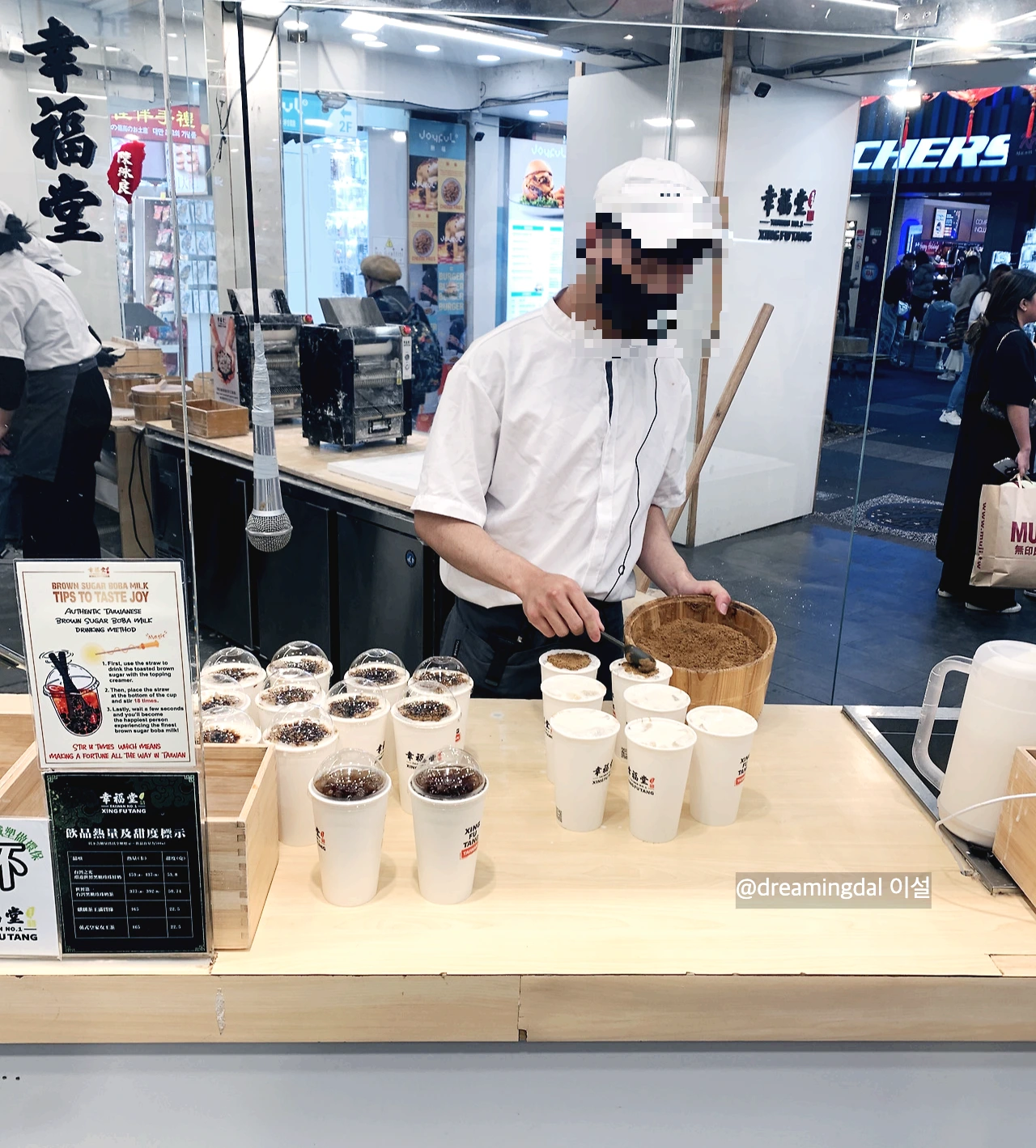 한쪽에서는 흑당을 만들고 다른 한쪽에서는 우유를 붓고 토치로 불맛을 입히는 과정이 쉼 없이 이어졌다.