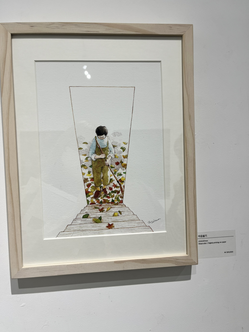빗질을 왜 할까? 그냥 낙엽이 바닥에 있으면 안 되나? 낙엽을 밟는 바스락 소리도 좋은데 이런저런 불만을 툴툴 거리지만 손은 열심히 빗질을 하고 있다 어느 순간 바람도 잠잠해지고 바닥에 있는 낙엽이 말끔하게 사라졌다 계단 두 개를 올라 거리를 바라본다 낙엽이 없어져 길의 원래 모습을 보니 뿌듯하다. 지나가는 사람들도 발에 거슬리지 않는 거리에 걸음걸이도 뚜렷해진다
