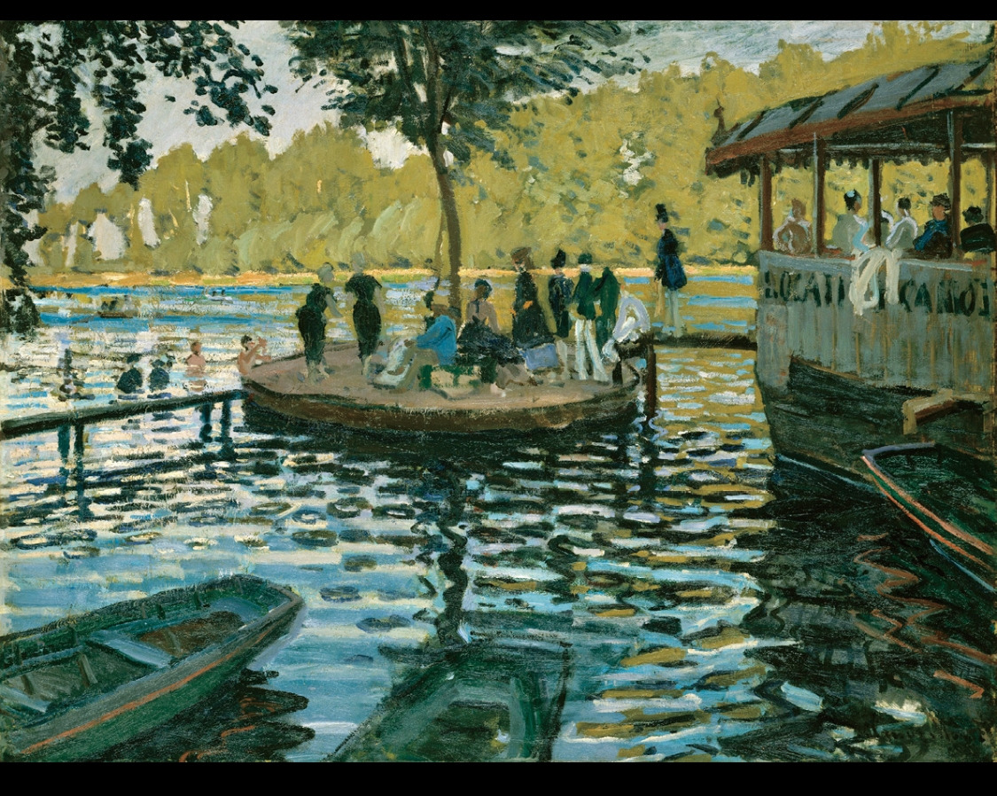 어느 화창한 날 소풍을 간다. 많은 사람들이 강가 근처에 있는 배를 타러 옹기종기 모여있다. 배를 타며 풍류를 즐기는 사람들, 강에 있는 뚝섬에서 삼삼오오 모여서 함께 수다를 떤다.