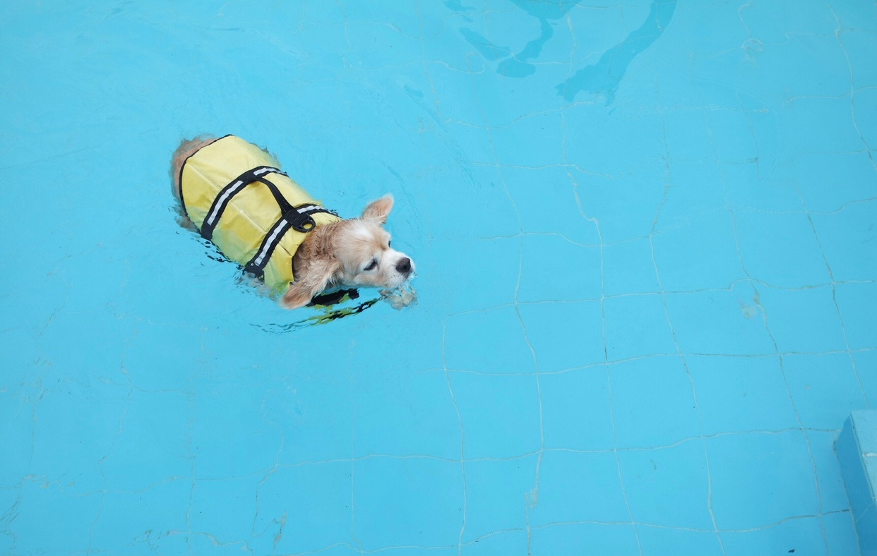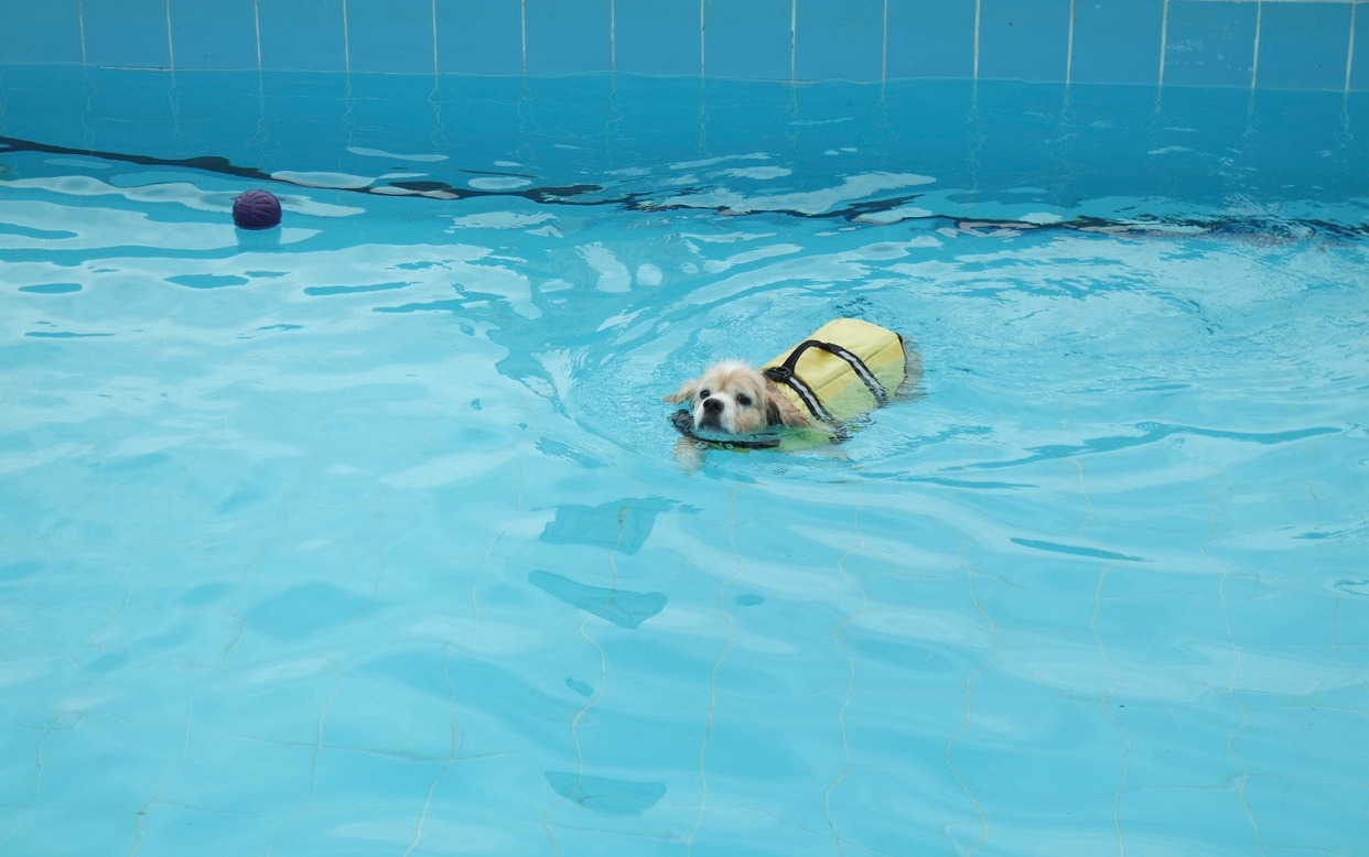 잔잔한 빗방울이 수면 위에 작은 원을 그렸고, 그 위에서 바니는 둥실둥실 귀엽게 헤엄쳤다.
