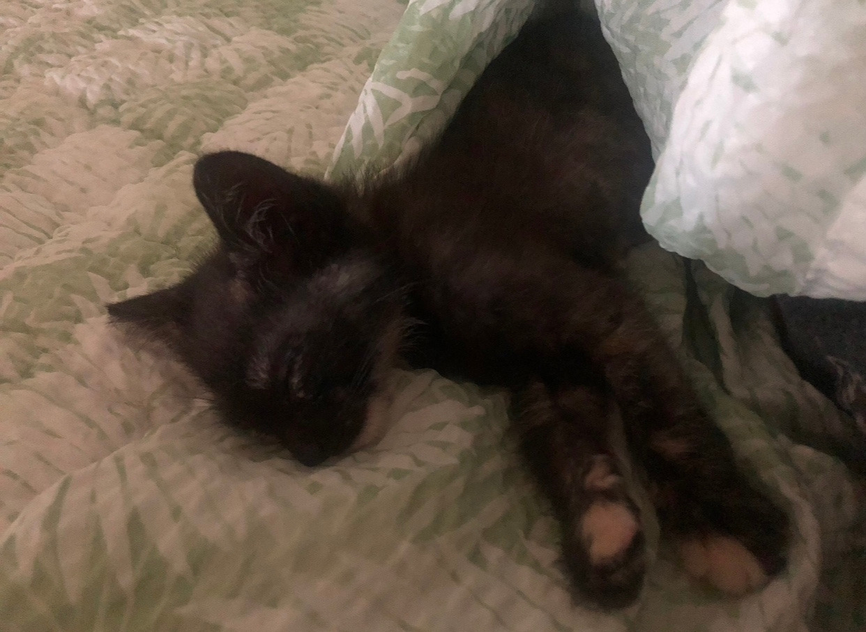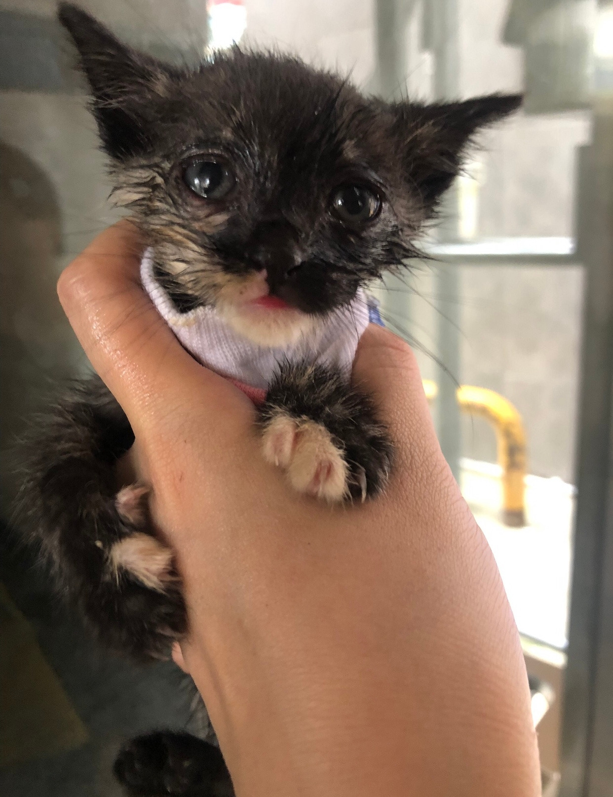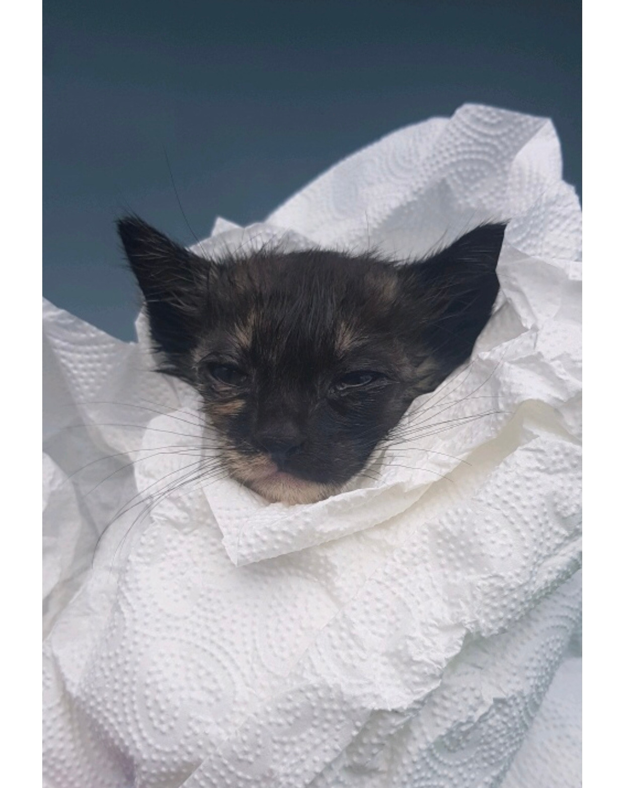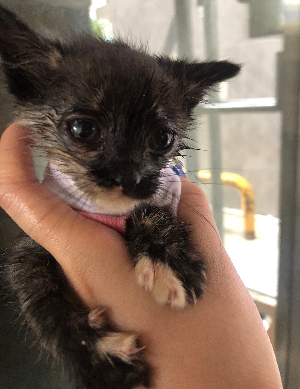 제일 작았던 막내 고양이가 쥐덫 끈끈이에 붙어서 울고 있었다. 급하게 기름을 구해 끈끈이덫과 분리시킨 후, 기름칠과 비누칠을 여러 번 한 후에야 끈끈이에 가려졌던 털이 드러났다.