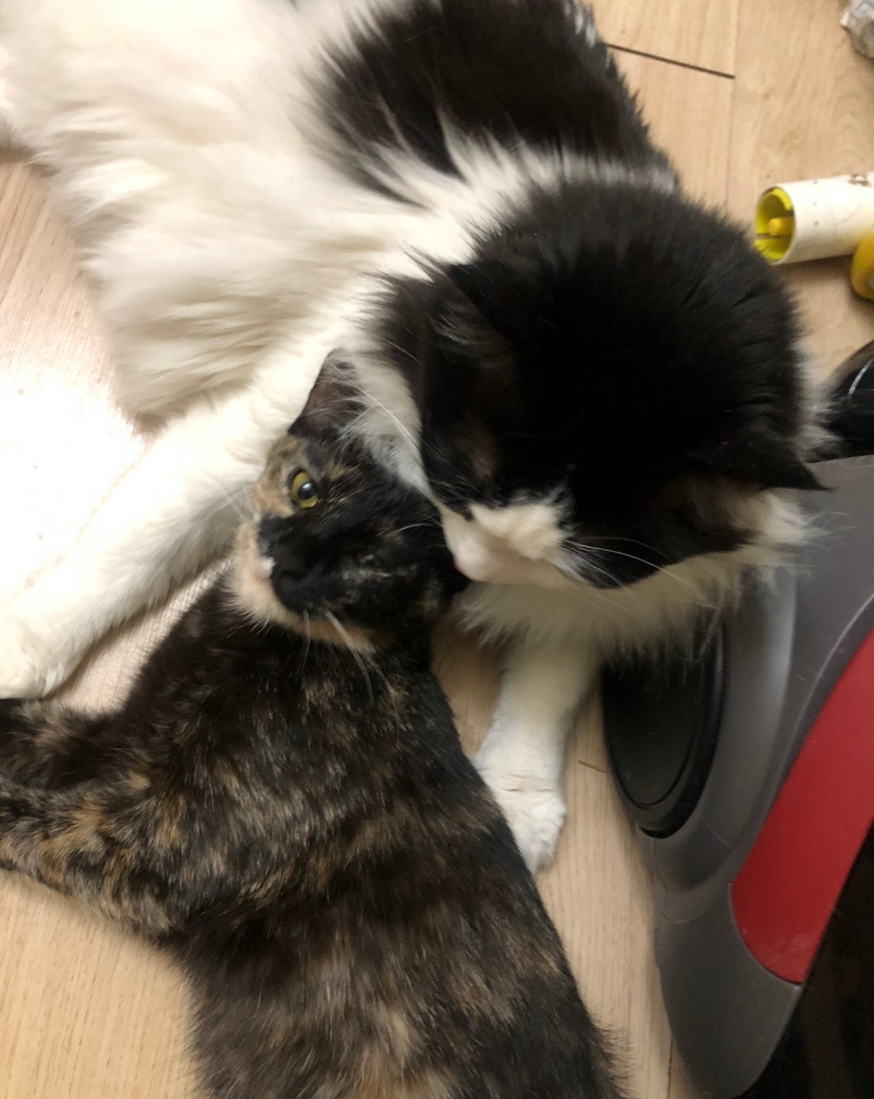 "고양이 탐정이라도 부를까." 농담처럼 중얼거리며 침대 귀퉁이에 앉았다. 잠시 졸다가 눈을 뜨자, 루피가 심바를 품에 안고 그루밍을 해주고 있었다. 그 순간, 마음이 조금 풀렸다.