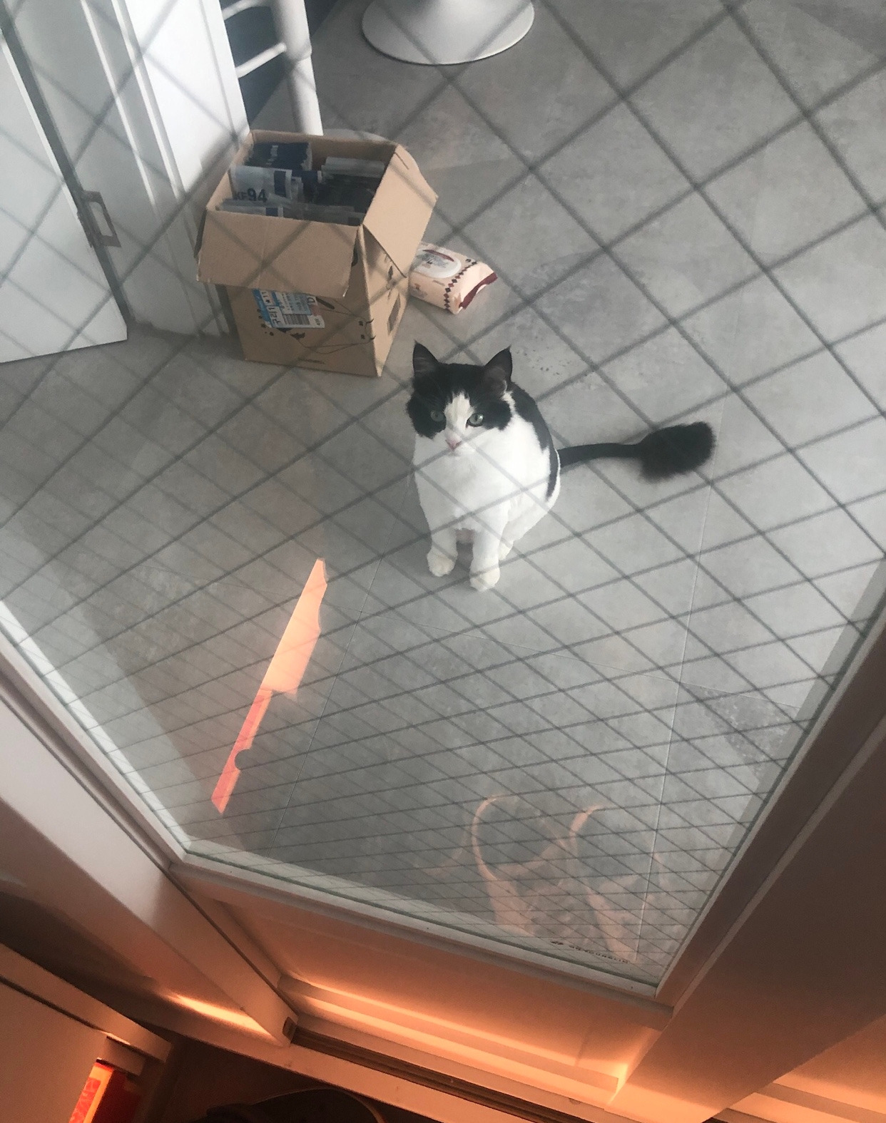 심바는 박스 틈 사이로 조용히 숨어들었다.