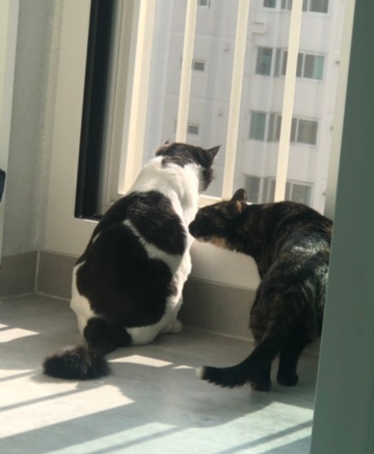 포장된 상자 주변을 폴짝폴짝 뛰어다니며 놀기 바빴다.