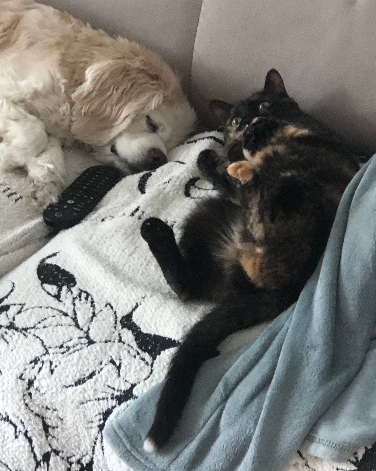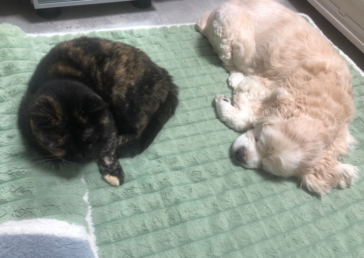 눈이 흐릿해지고 뒷다리에 힘이 빠졌어도 먹는 것만큼은 늘 진심인 바니. 그리고 좀처럼 곁을 내어주지 않던 까칠한 심바는 요즘 부쩍 루피를 닮아간다.