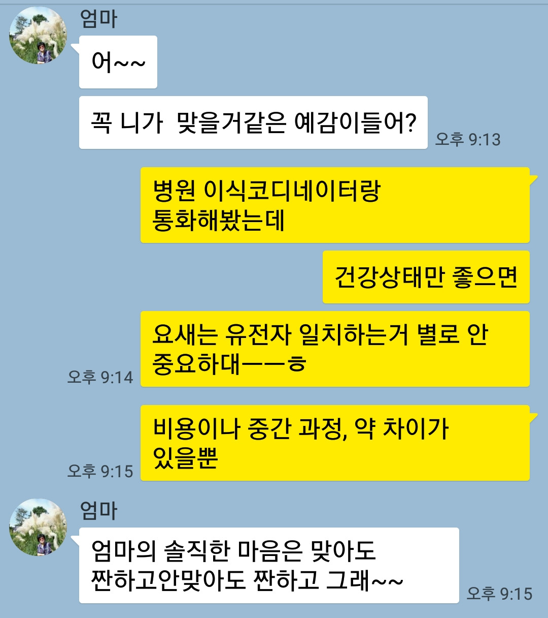 바로 얼마 전인 9월 초, 이식 적합성 검사를 마치고 집으로 가는 길, 시댁에 전화를 드렸다.
