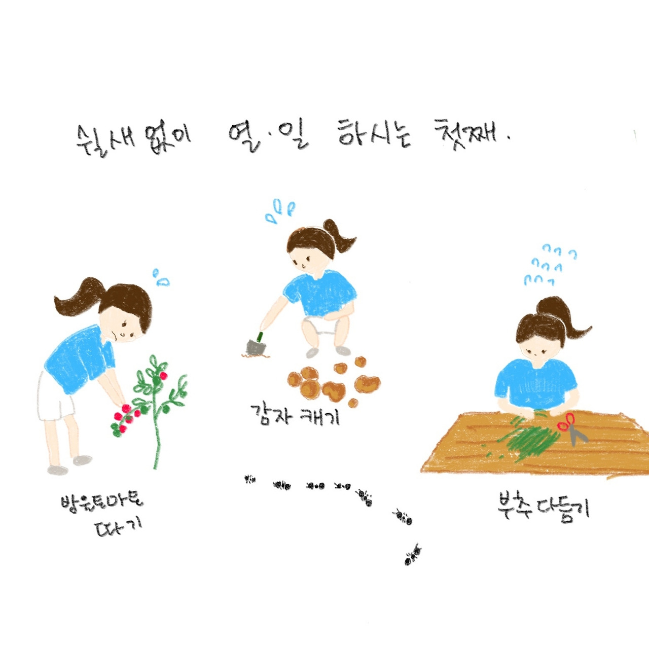 집에서도 학교에서도 밭에서도 부지런하고 성실한 일상.
