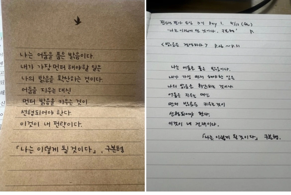 지금 가장 큰 비중을 차지하는 필사의 시간.