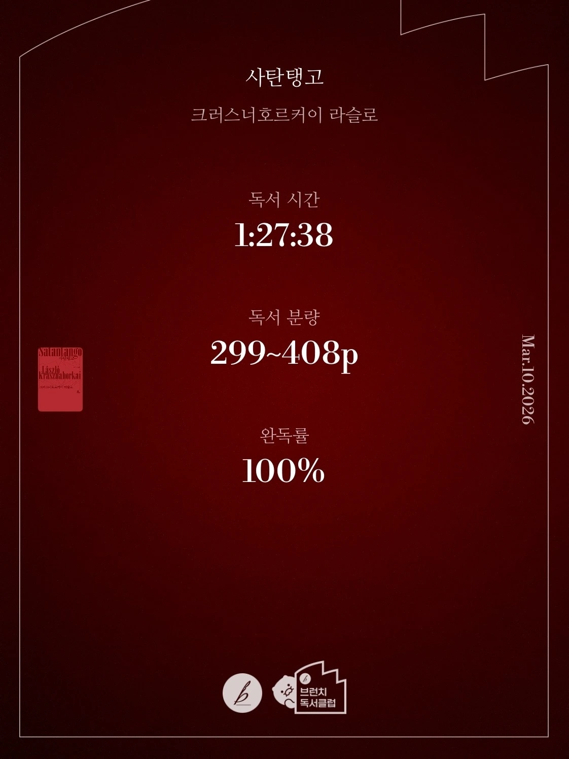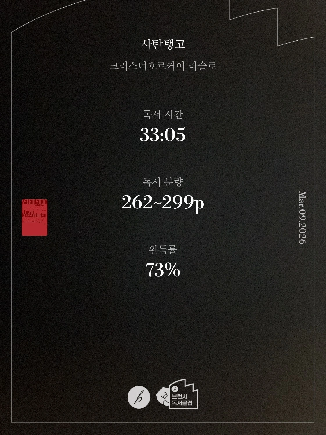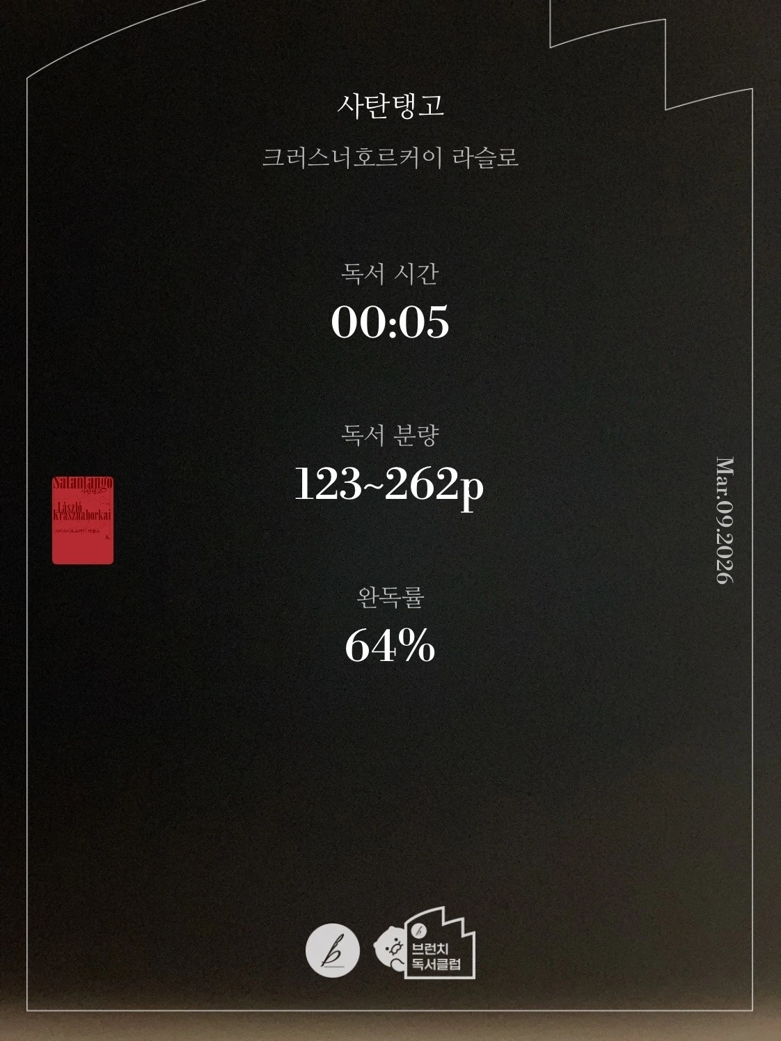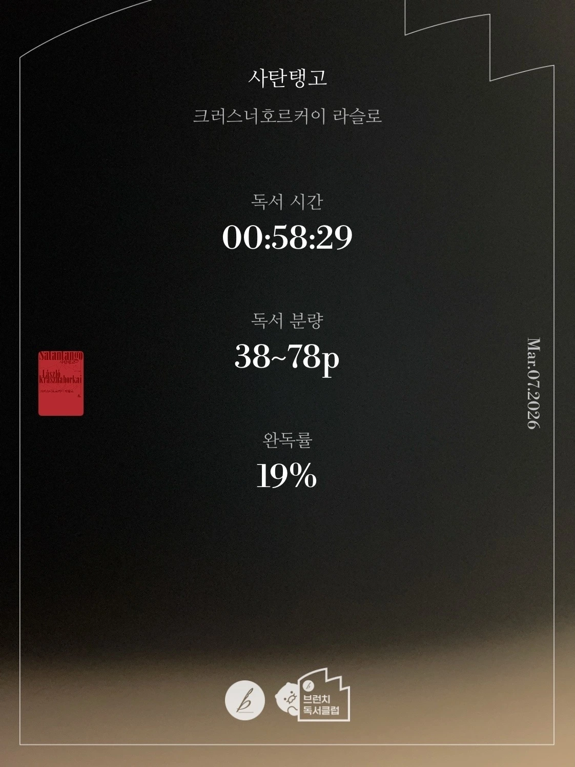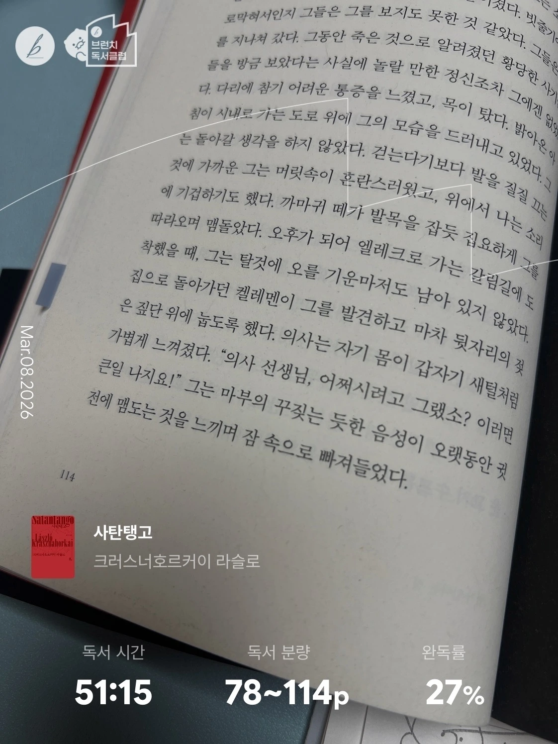 가장 순수했기에 가장 비극적인 선택을 한 에슈티케의 죽음은 의미를 만들어낼 수 없는 세계에서 일어난 조용하고 무력한 사건이었기에 더욱 아프게 남았다. 하지만 무엇보다 마지막까지 나를 붙잡은 건 역시 후터키였다. 독서모임에서 문하연 작가님이 "이 책의 주인공은 누구일까"라고 묻는 순간, '아, 후터키구나!' 하고 탄성이 터진 것도 그 때문이다. "바닥까지 떨어졌다... 이건 정의가 아니야. 정의는 없다고(p.361)"라고 자조하면서도, 스스로를 "길 잃은 양처럼 여기 서 있구나(p.270~271)"라며 스스로를 불쌍히 여기는 그의 뒷모습이야말로 이 지독한 사탄탱고의 리듬을 온몸으로 받아내고 있는 진짜 주인공 같았다.