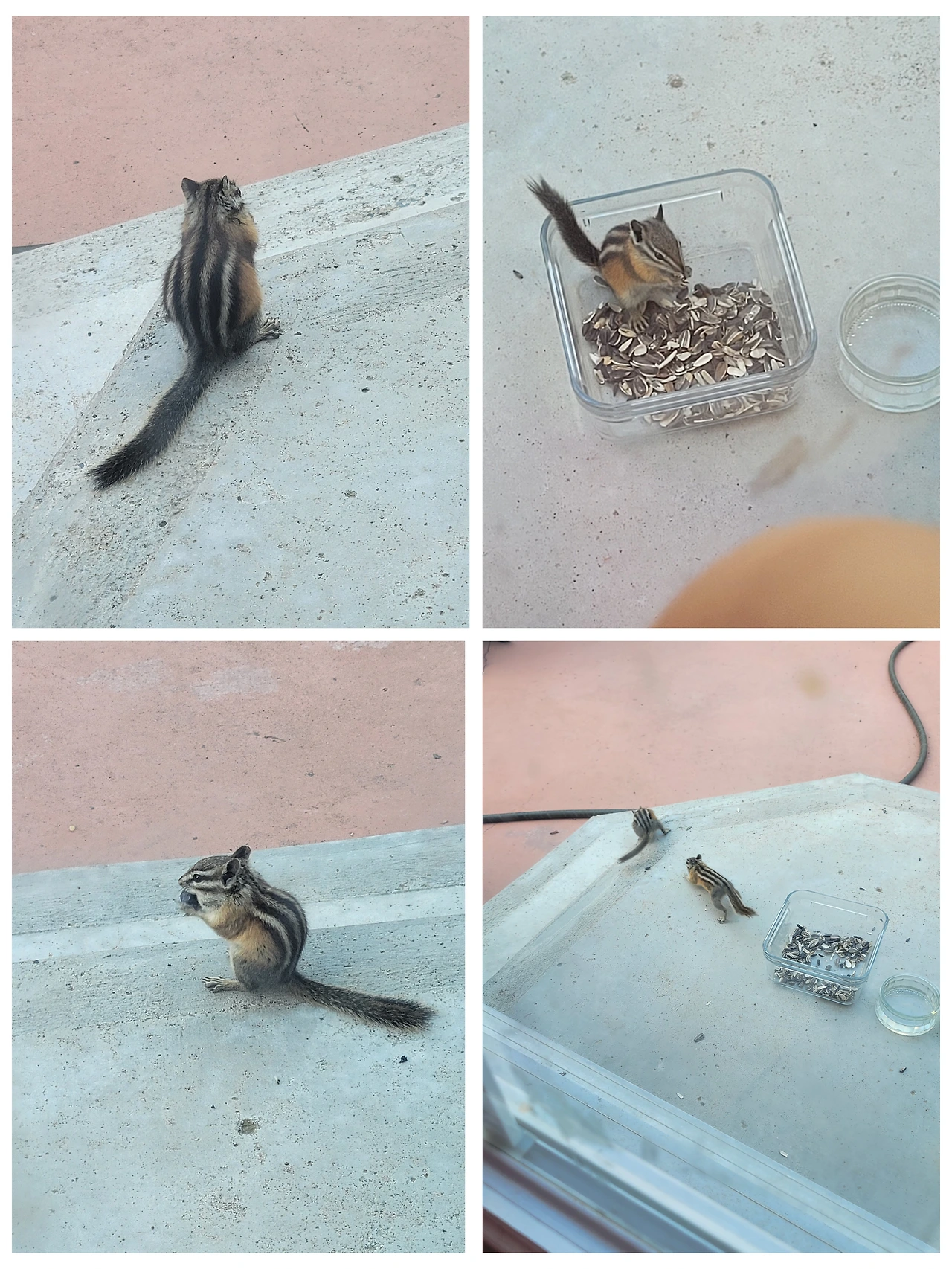 작년에도 왔었는데 올해 온 다람쥐들과 같은 다람쥐들인지는 모르겠다. 작년에는 2마리였는데 올해는 4마리가 찾아왔다.다들 비슷하게 생겨서 구분이 안되니 정확하지는 않지만 동시에 나타난 숫자가 그렇다.