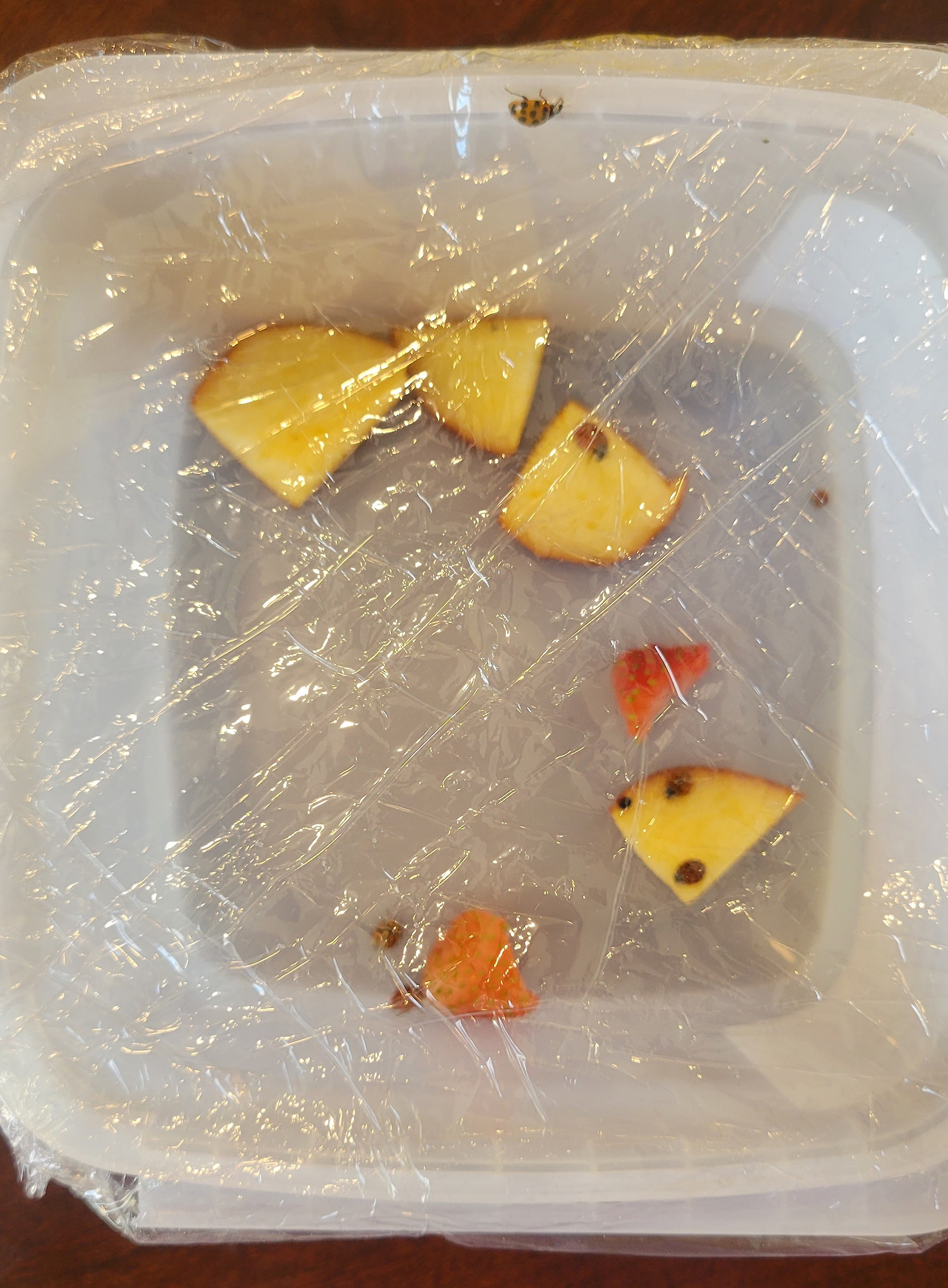 첫날에는 포도를 잘라 넣어주고, 다음날에는 토마토를 잘라 넣어주었다. 먹이로 어떤 것을 줘야 할지 걱정됐는데 너무 잘 먹어서 안심이 됐다.