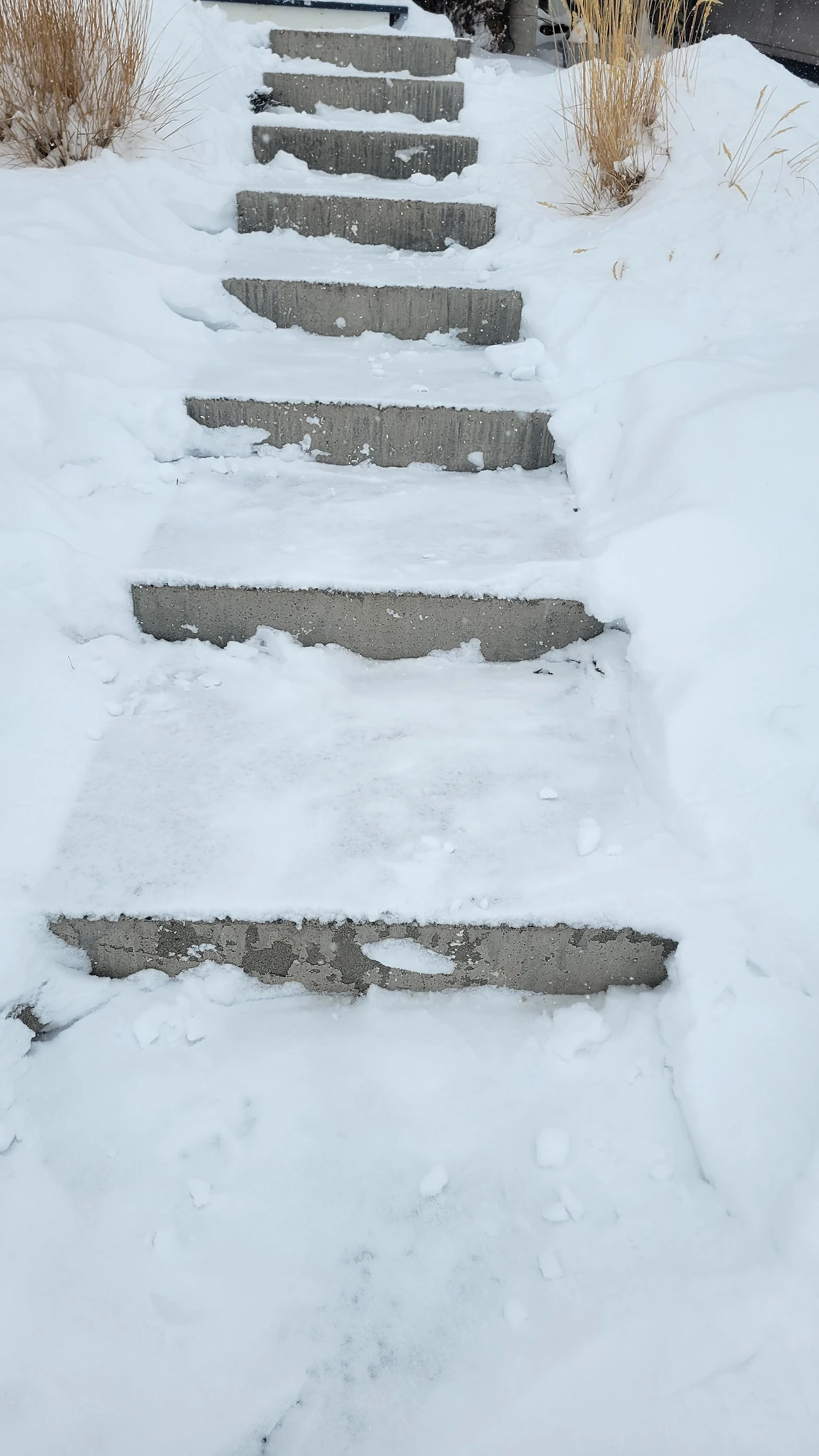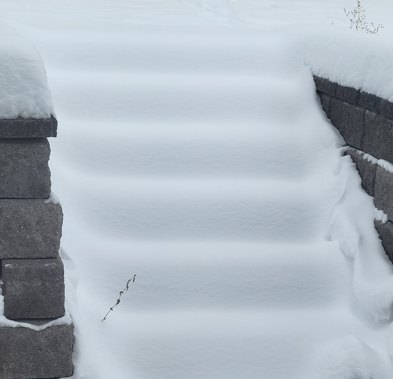 나는 완전무장을 하고 삽 하나 들어 마구마구 눈을 치우기 시작했다. 밀가루처럼 보슬보슬한 눈이라 무겁지 않아 좀 수월했다. 가라지 앞 드라이브웨이, 집 앞 인도, 인도에서 현관까지 이어지는 계단을 모두 치워야 해서 마음이 급했다. 20cm 정도의 눈이 라던데 그칠 줄 모르고 계속 내리는 눈을 보니 30cm는 될 것 같다. 열심히 치우다 보니 양쪽으로 눈 언덕이 만들어지고 사람 다니는 길이보였다. 뿌듯하게 마저 치우고 허리를 세워 살펴보니 그새 눈이 다시 쌓인다. 아이들 데리러 가기 전에 나와서 다시 한번 더 치워야했다.