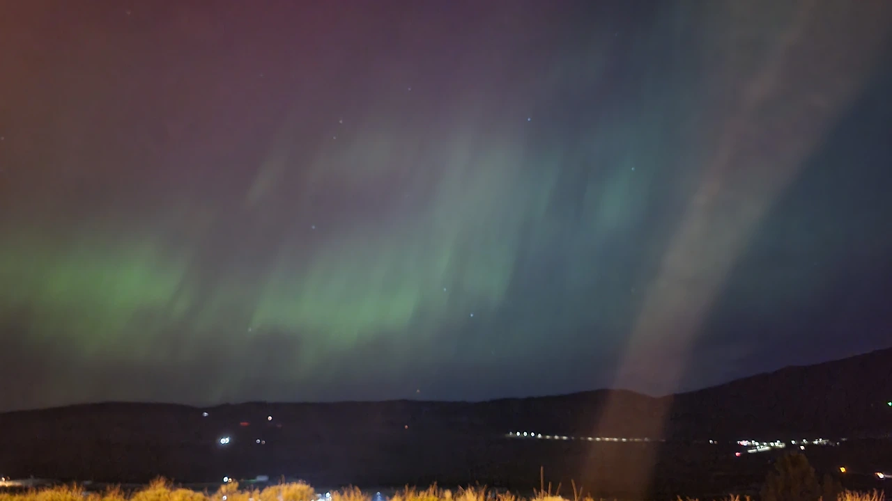 뿌연 오로라라도 사진으로 남겨야겠다고 생각한 후 핸드폰 카메라를 켰는데 집 뒤쪽으로 어마어마한 오로라의 모습이 보였다. 눈으로 보는 것보다 카메라를 통해 보았을 때 색이 더 선명하게 보여서 계속 사진을 찍었다.